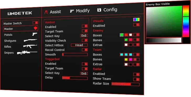Wallhack (Esqueleto)Radar EspLinha até o inimigoExibir NomeExibir VidaExibir Nome da Arma que o Inimigo está nas mãos