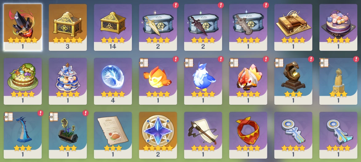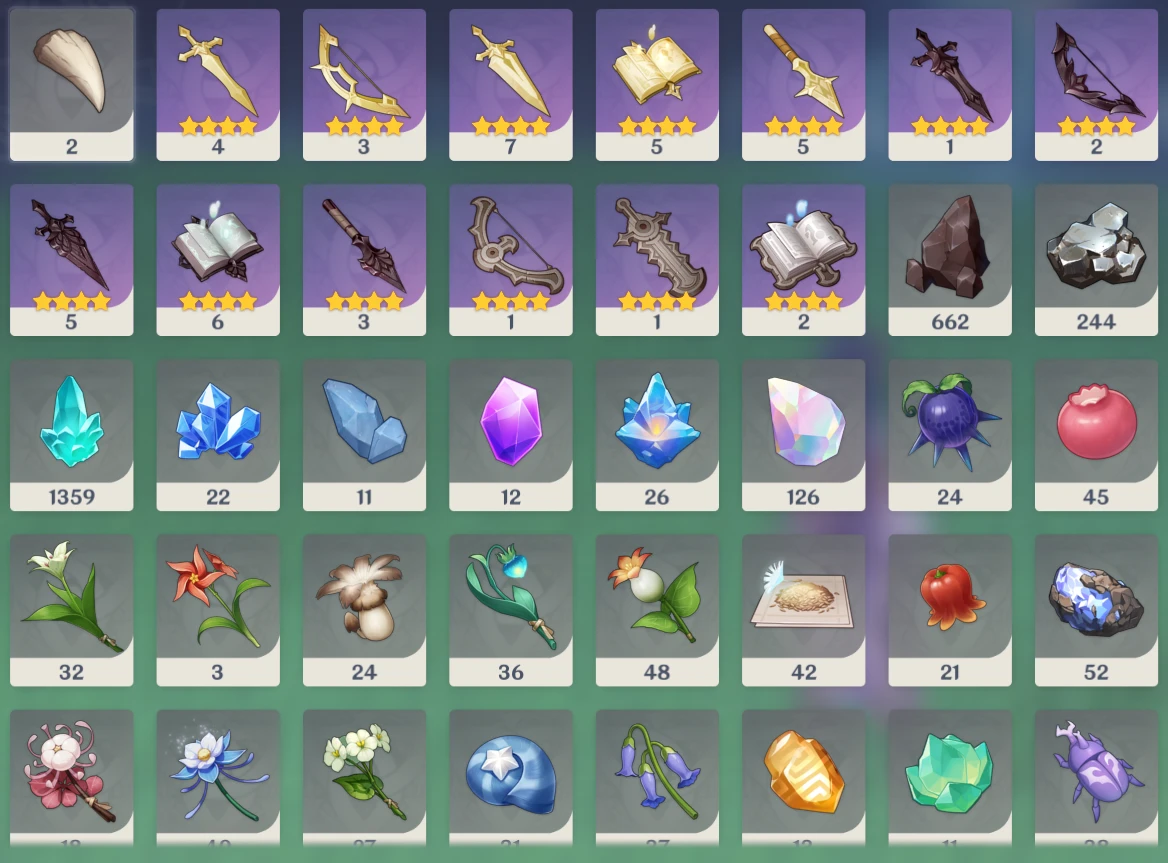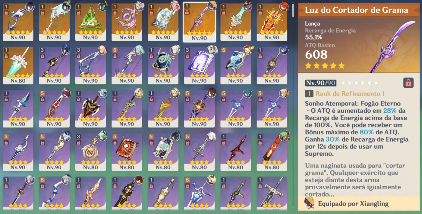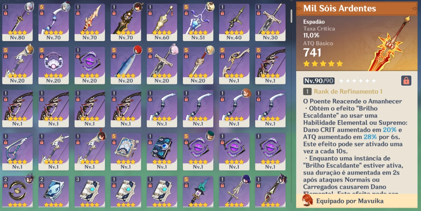 Muitas armas 4 estrelas de eventos que não retornam no jogo (mostrado nas imagens)