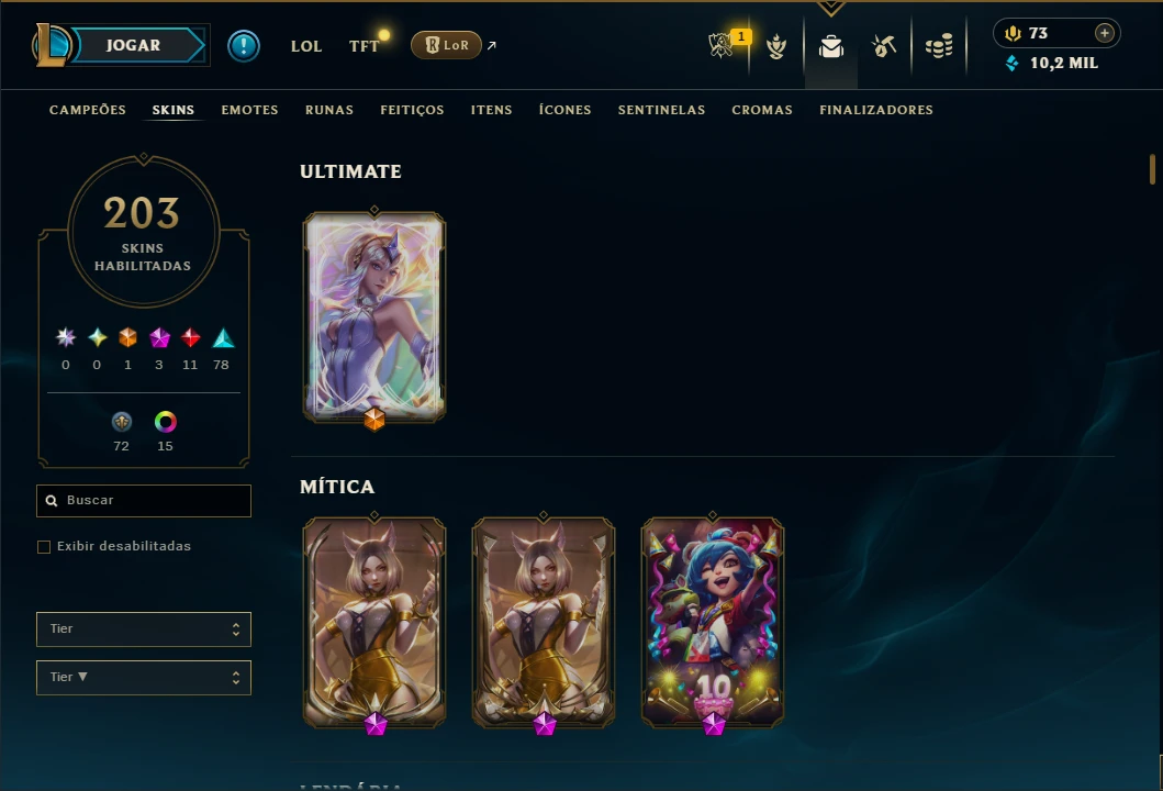 ( ADC / MID / JG ) - Conta Ferro 3 com TODOS os Champs, Maestria 38 de Ahri, 11 de Kayle, 11 de Xayah, 18 Maestrias acima de 7, 203 Skins, 3 Miticas, 2 Prestigios da Ahri, 3 Vitoriosas, 10k de EA, 15 Cromas, 228 Ícones, 123 Emotes, 1 Fragmento de skin, 7 de Campeão, 3 Reembolsos e Honra 3.