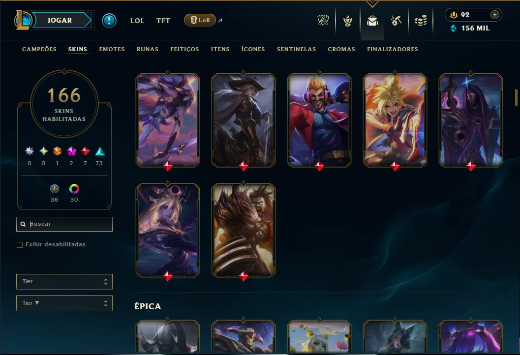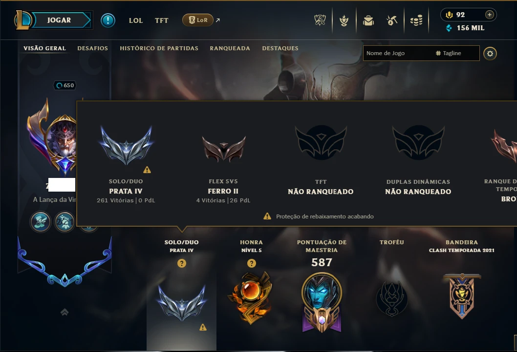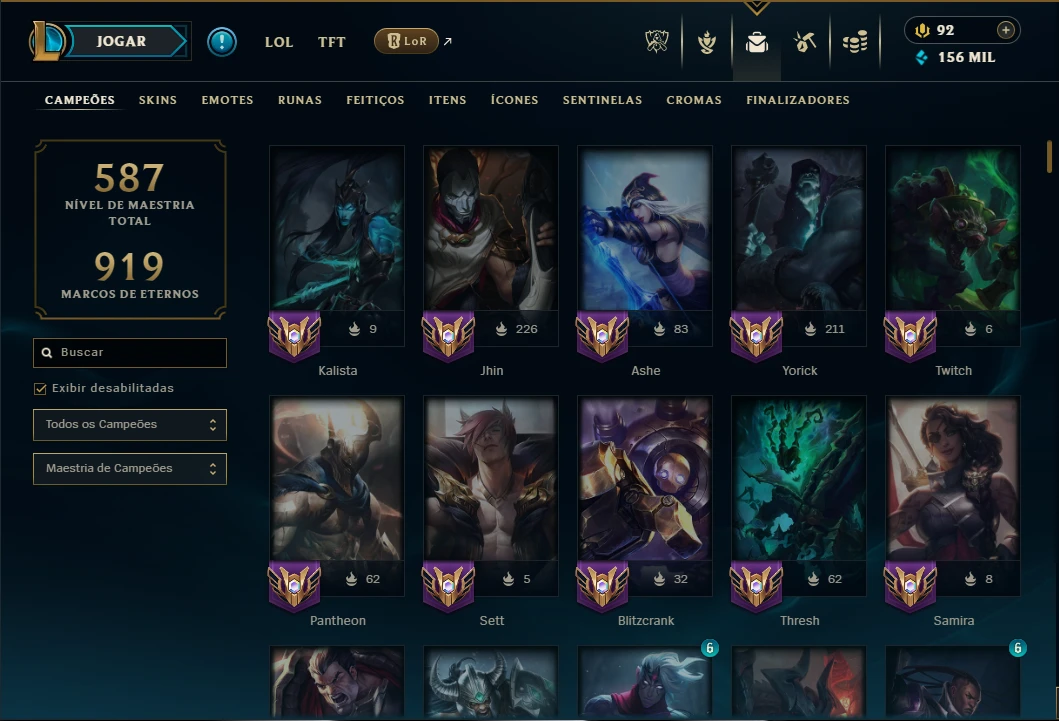 ( ADC / SUP / TOP ) - ( Nivel 650 ) - Conta Prata 4 com mais de 500 Jogos, TODOS os Champs, Maestria 71 de Kalista, 45 de Jhin, 38 de Ashe, 33 de Yorick, 27 de Rato, 21 Maestrias acima de 7, 166 Skins, 2 Miticas, 3 Vitoriosas, 156k de EA, 30 Cromas, 290 Ícones, 241 Emotes, 3 Reembolsos e Honra 5.