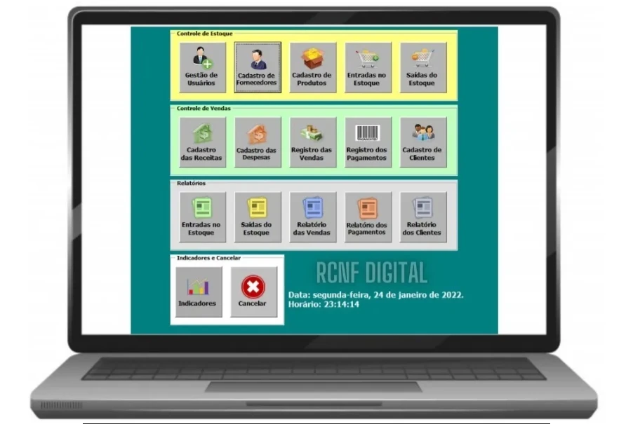 Nessa área você encontrará os indicadores dos principais pontos do seu Controle de Estoque Com Fluxo de Caixa, além de um relatório gerencial pronto para impressão com todos os resultados e gráficos disponíveis.