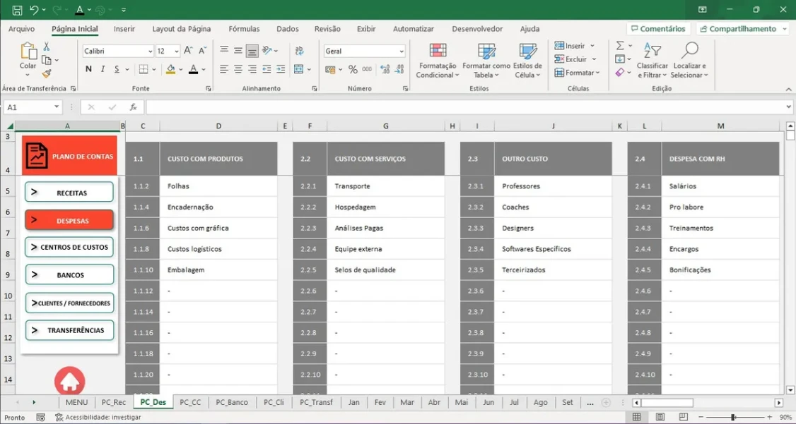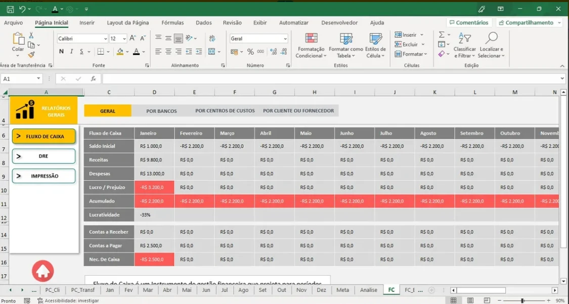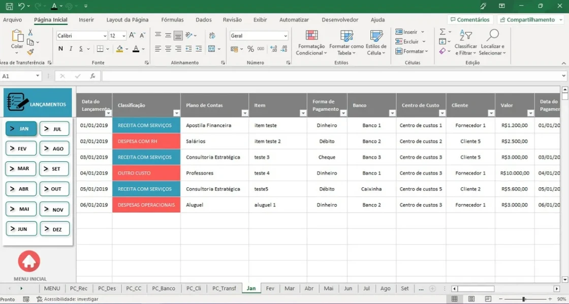 Essa planilha representa o auge em controle financeiro. Do fluxo de caixa ao controle de centros de custo, você terá em suas mãos todas as ferramentas necessárias.