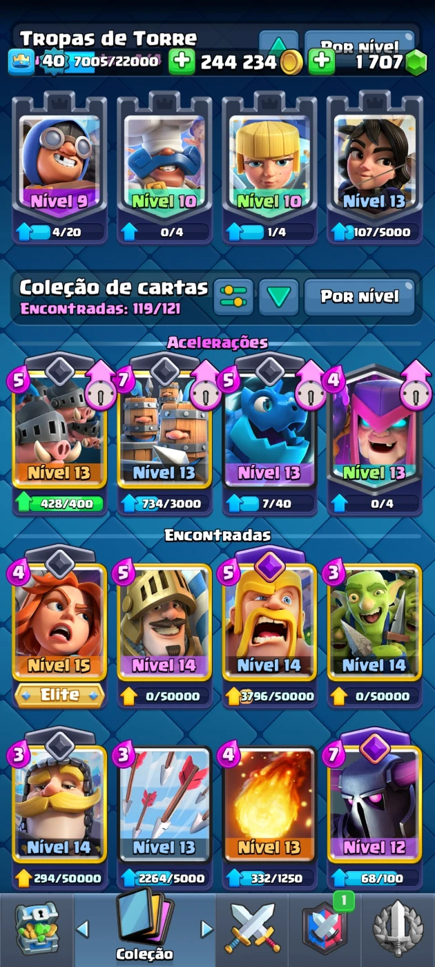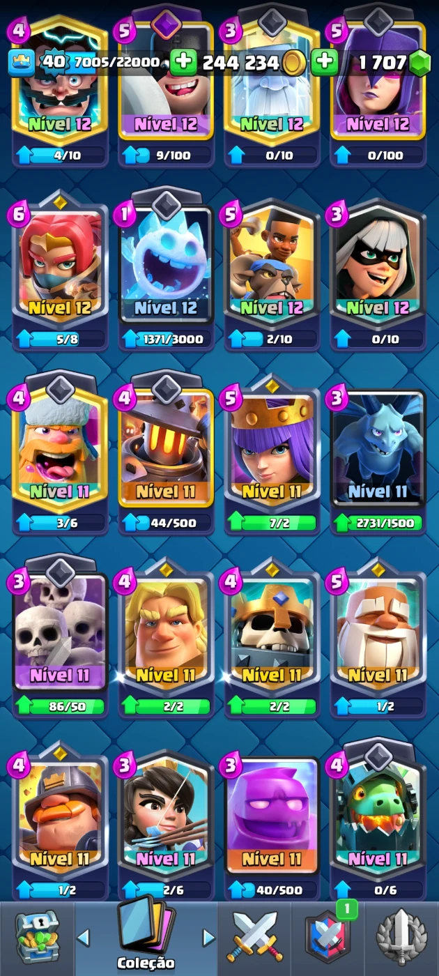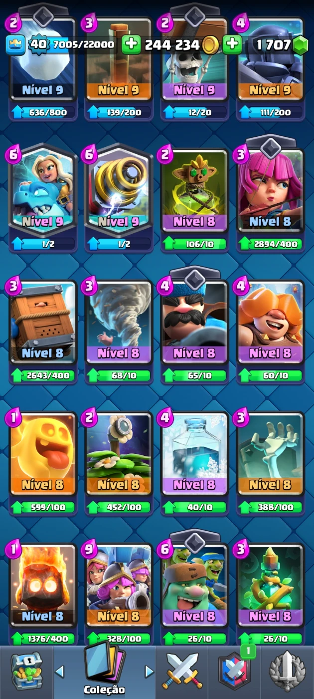 ☑️ Varias cartas ja com bastante saldo para serem melhoradas