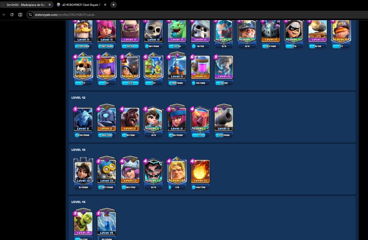 Níveis Altos: Barril de Goblins e Zap Nível 14; Princesa, Bombardeiro, Mosqueteira, Eletrocutadores, Cavaleiro Dourado e Bola de Fogo Nível 13.