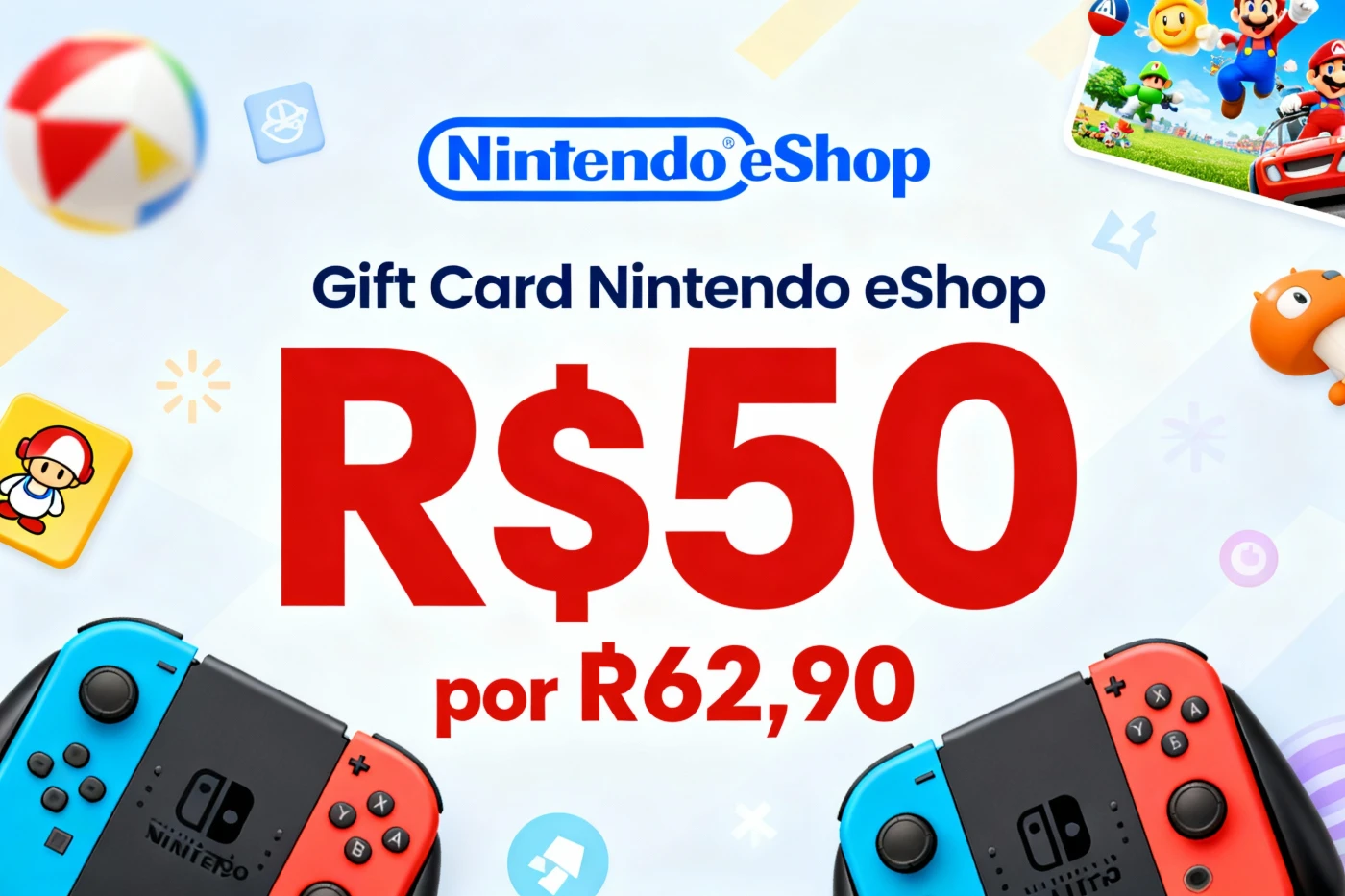 - Gift Card digital Nintendo eShop de R$50, válido para contas BR.