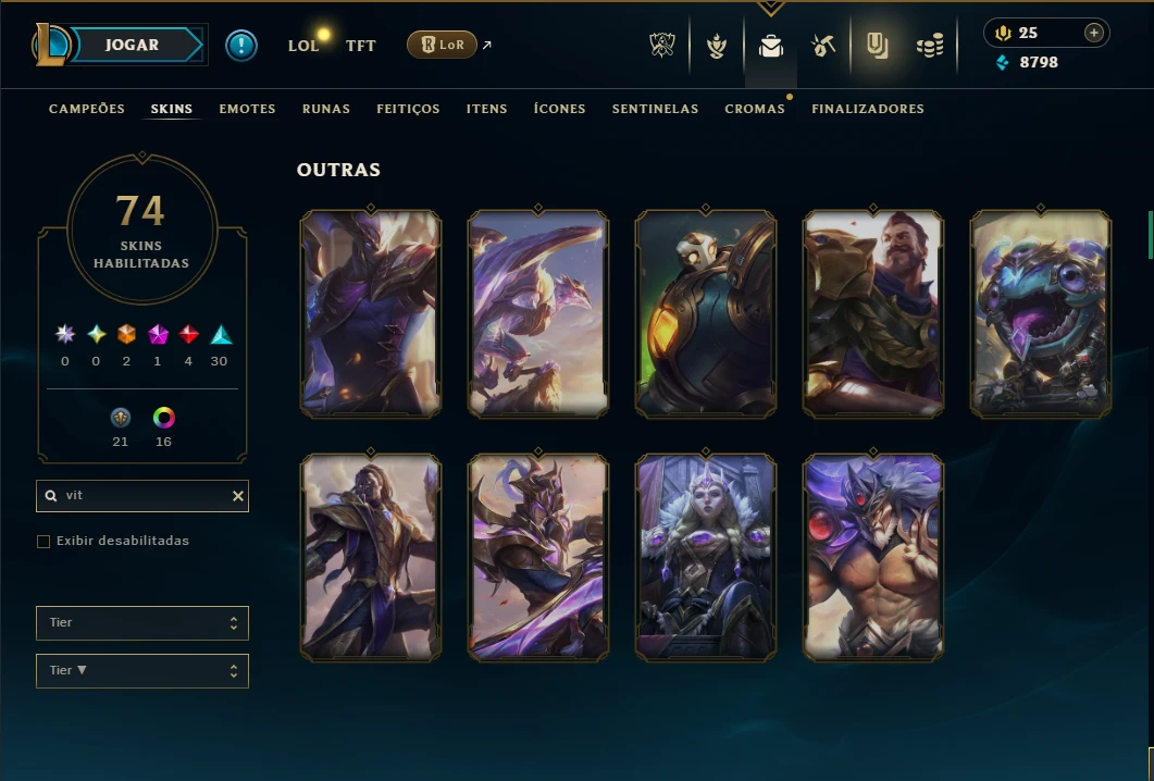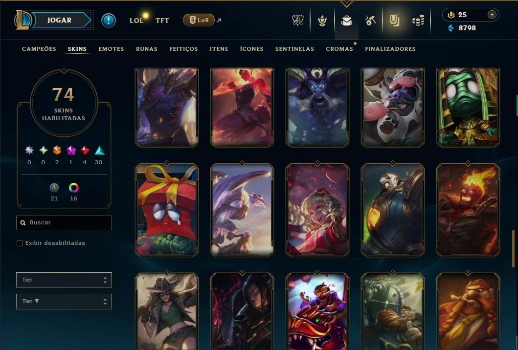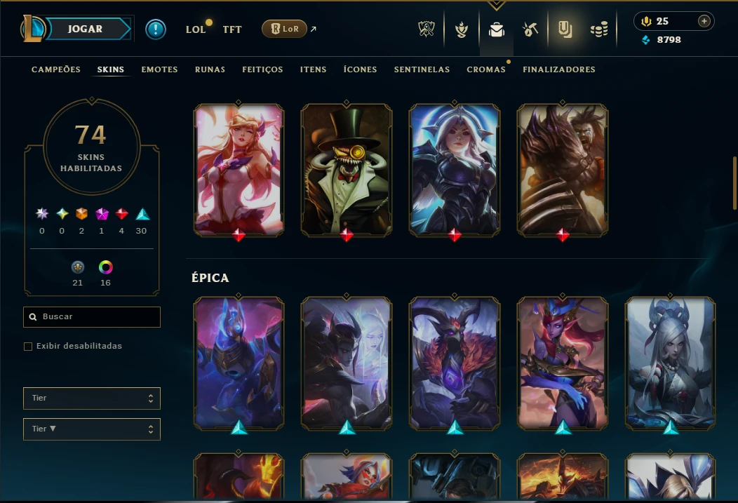 ( ADC / SUP / JG ) - Conta Unranked com 115 Champs, 74 Skins, 2 Ultimates, 9 Vitoriosas, 17 Cromas, 179 Ícones, 96 Emotes, 3 Reembolsos e Honra 3.