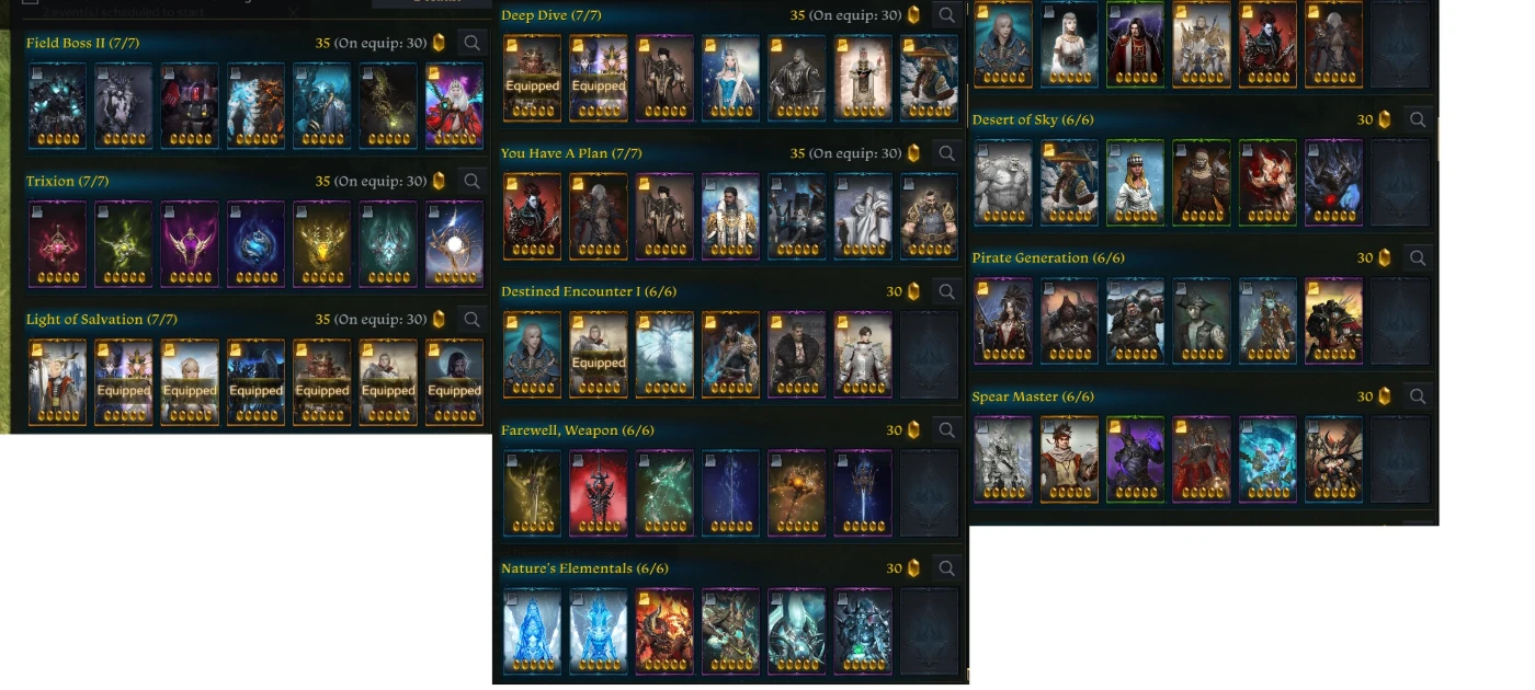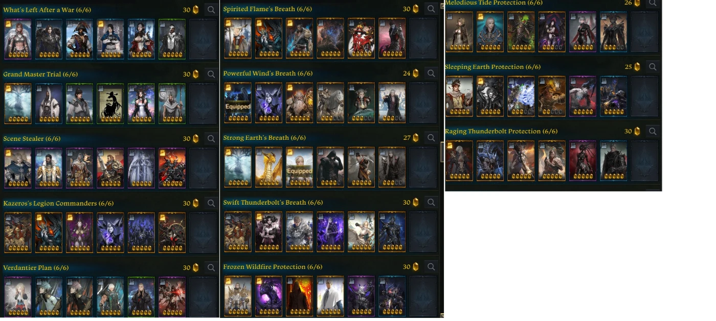 card set 30 = los, lwc klc, fire, agua sup fire 30 water 30 earth sup 30 .. enfim unico set qse 30 ainda não 30 de dps é o de terra o resto ta 30 ihul