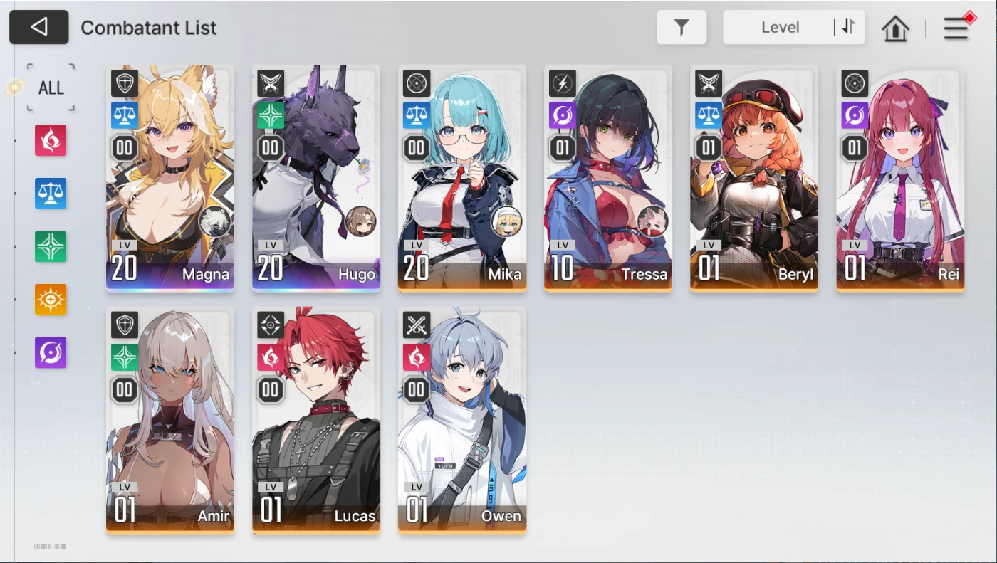 Personagens pegos no banner de desconto inicial. Começo do game ainda :3. Todos os personagens da conta na foto. e-mail feito somente para essa conta.