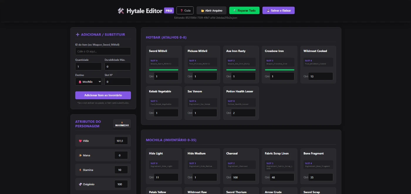 🛠️ Hytale Inventory Editor PRO | Edite Itens, Status e Mais
