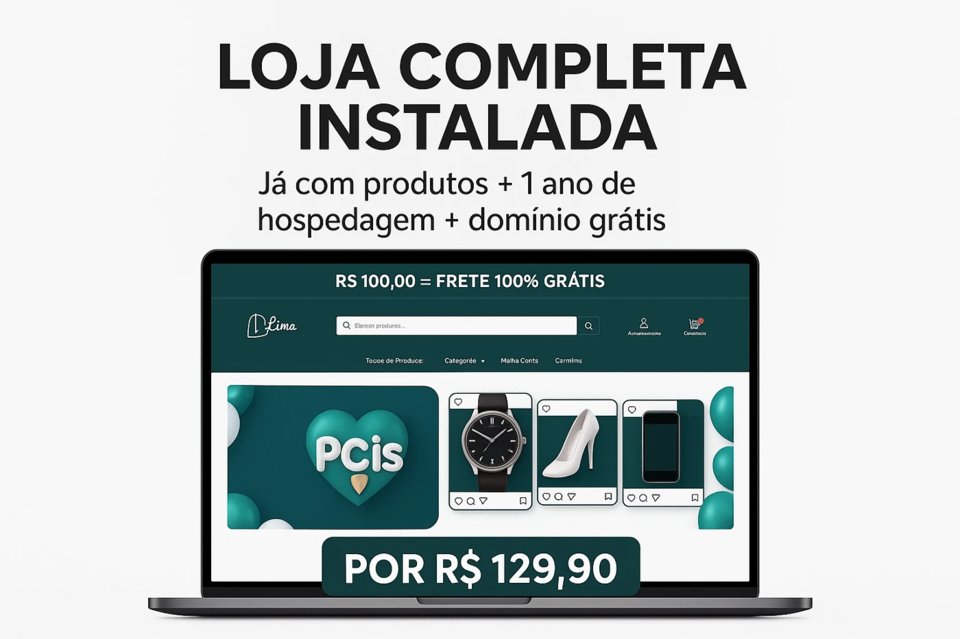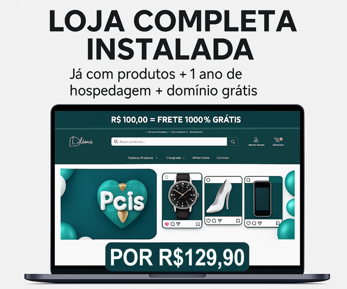 Com apenas R$ 129,90, você recebe uma loja completa, moderna e totalmente instalada, pronta para faturar no digital.