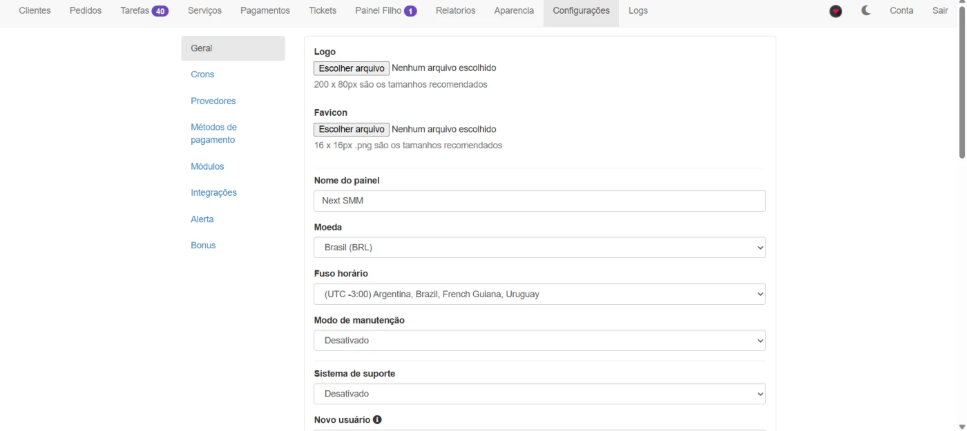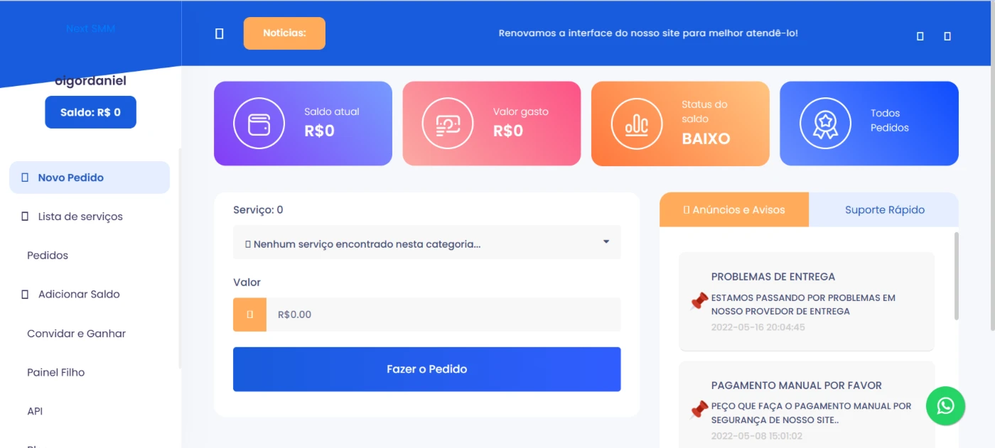 ⚠️ Nota: API de serviços SMM não inclusa.