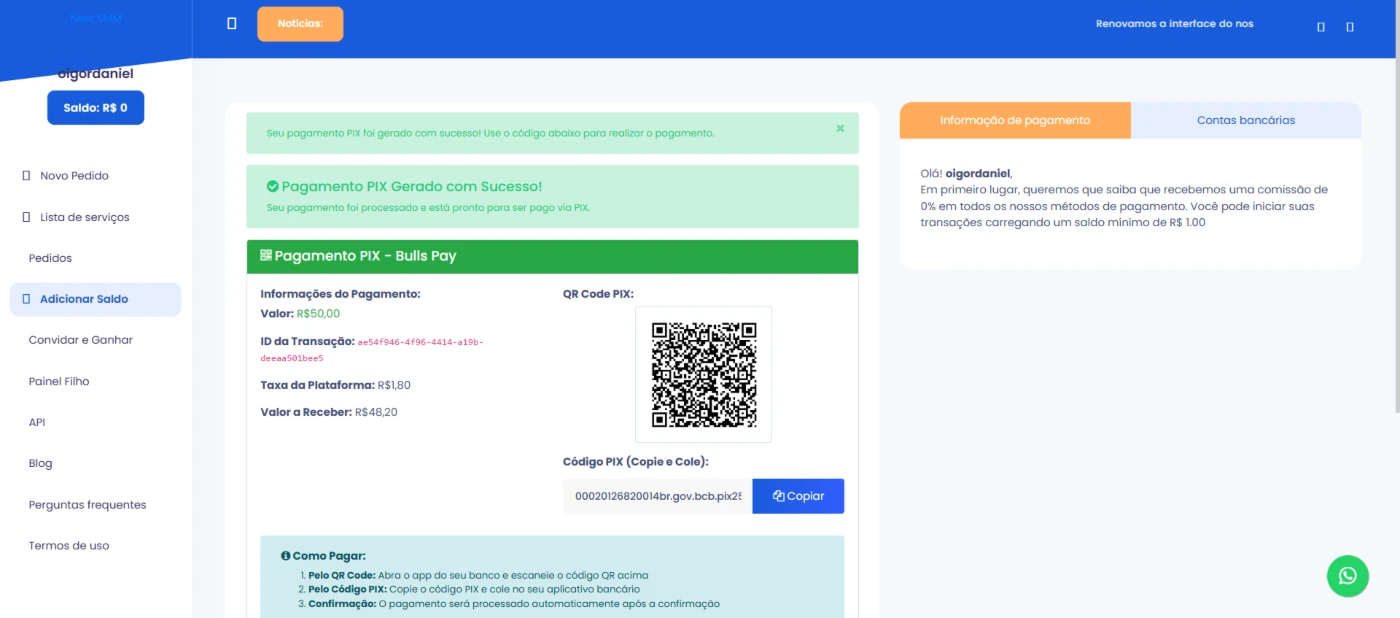 Painel SMM Completo com PIX Automático