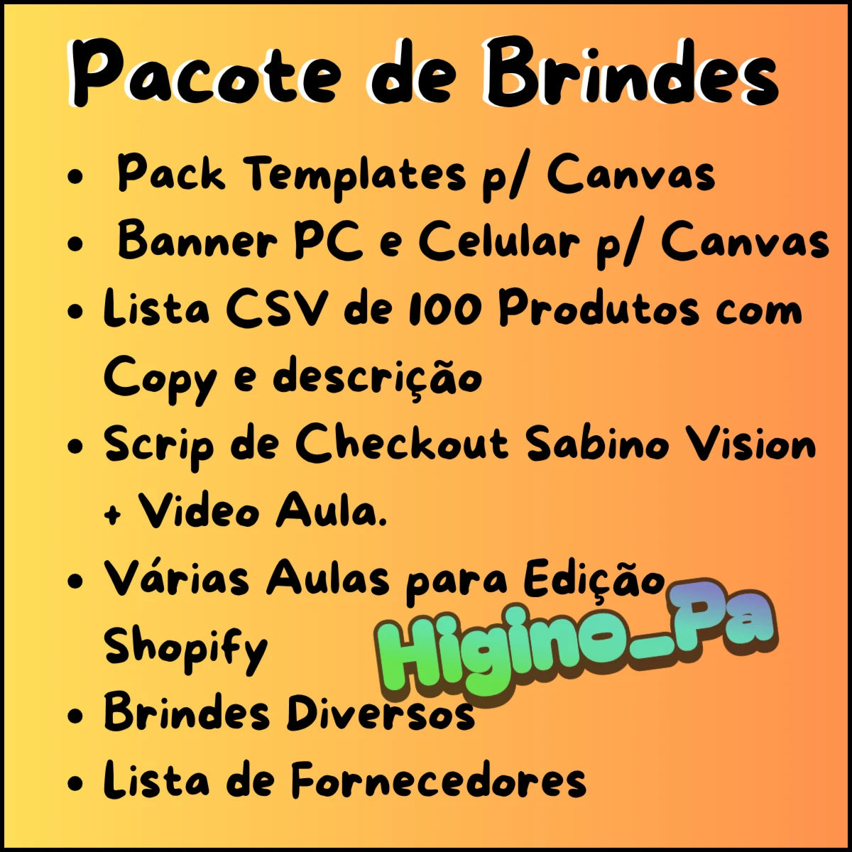 # Receba Junto um Super Pack de Brindes Shopify contendo: