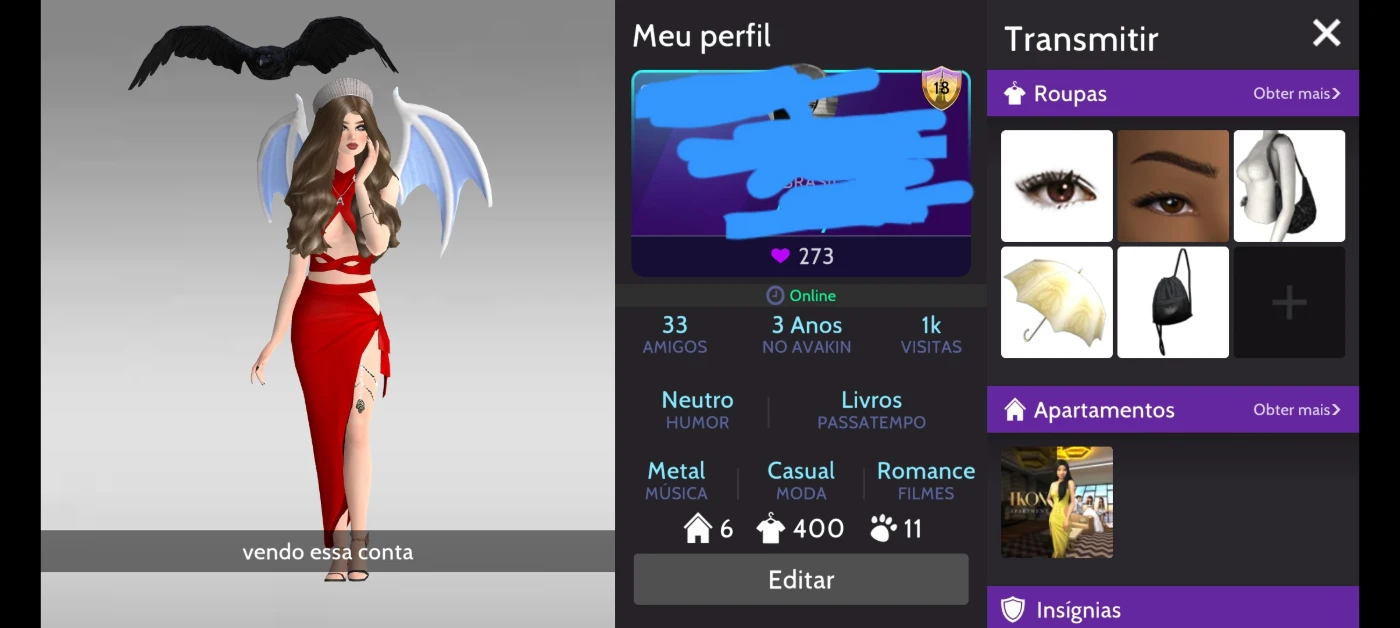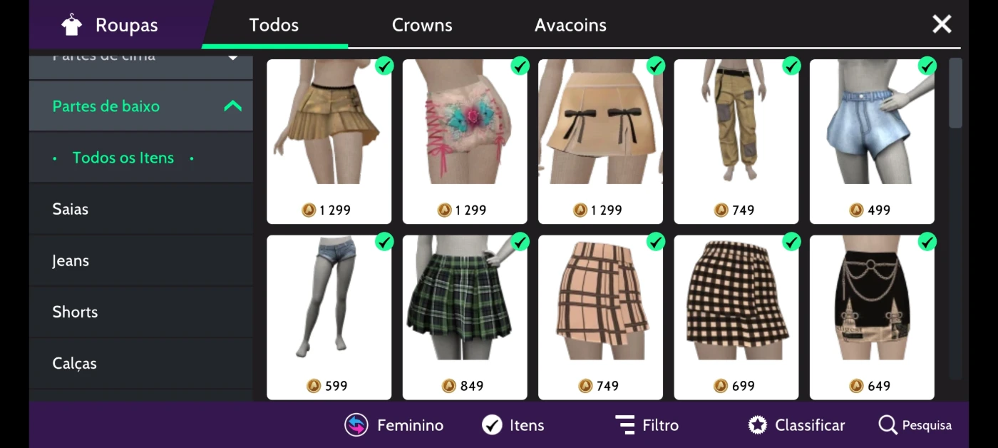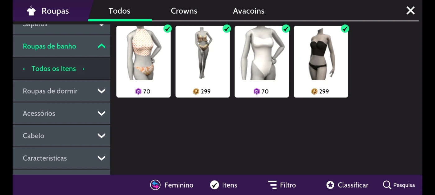 Conta com bastante variedade de itens para criar vários estilos de avatar e aproveitar melhor o jogo.