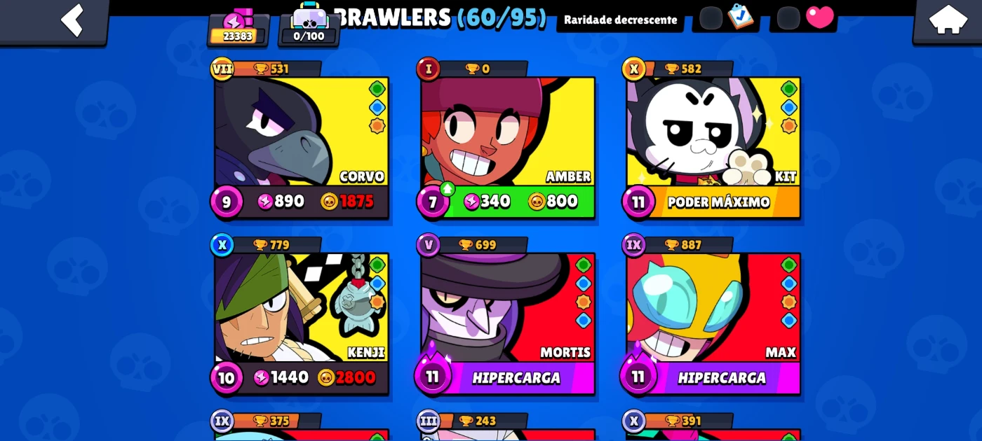 Brawl Stars 11 Hiper ATIVAS vários lendários e 100 Skins