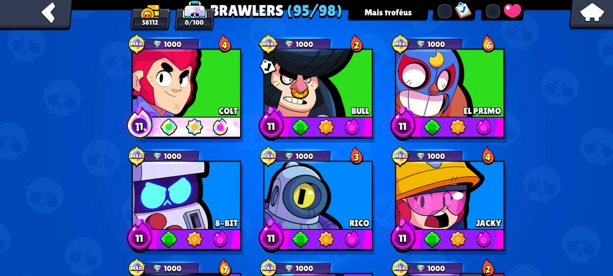 Conta Brawl Stars 58000 trófeus email único 366 skins