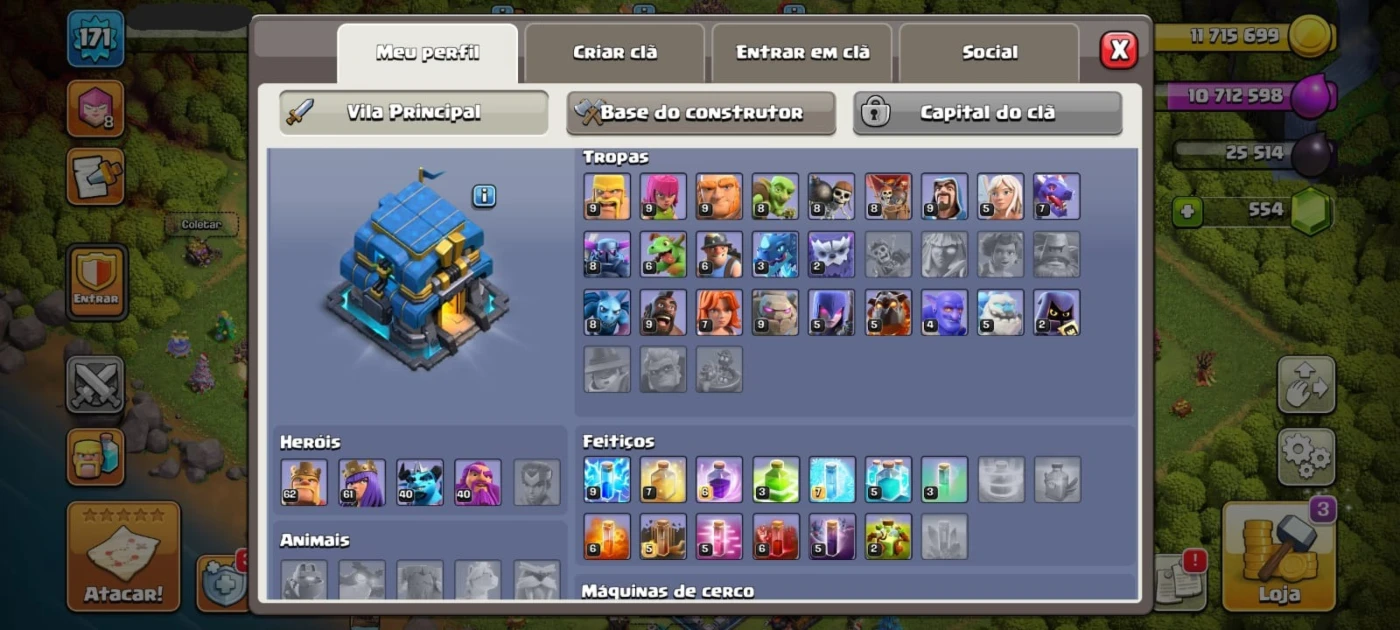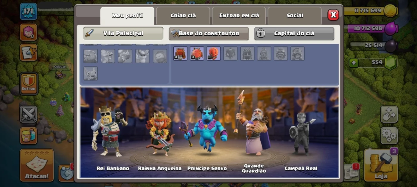 Conta Clash Of Clans CV12 FULL com skin de herói