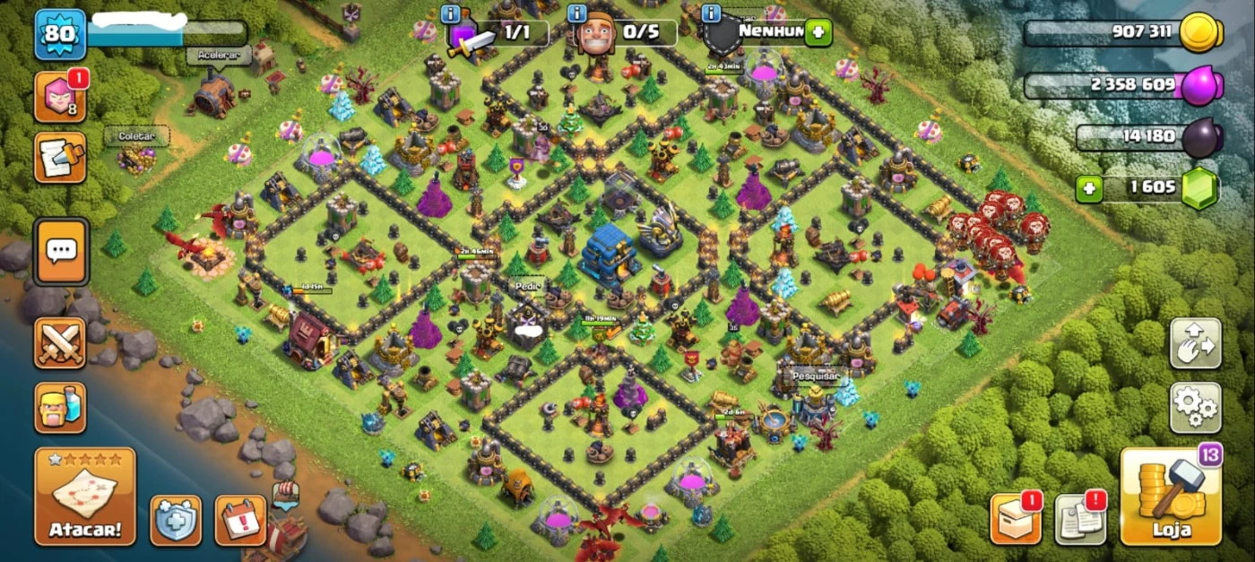 Cv12 ecológica com 1600 gemas - Clash of Clans