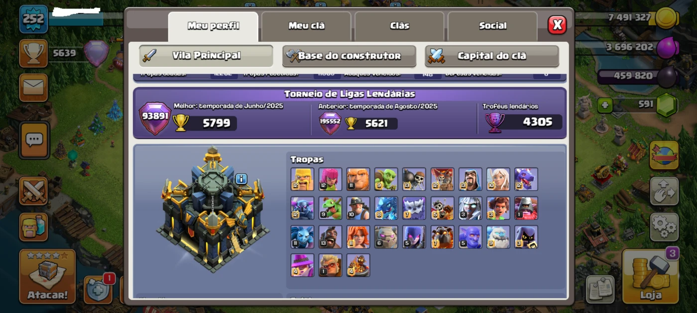 Cv17 Lenda - 95% Full - Heróis Full - 10 Equipamentos Épicos - Clash of Clans