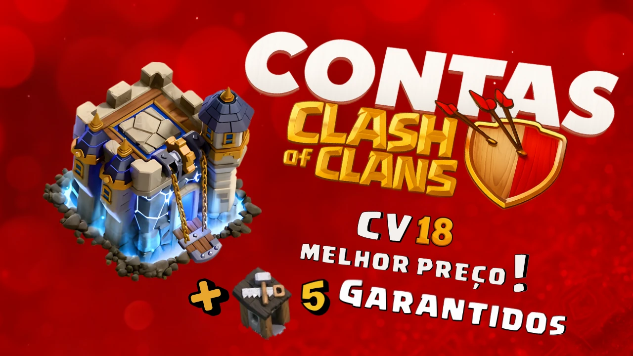 CV18 | 5 Construtores + Muros MAX + Nick Alterável ✅ - Clash of Clans