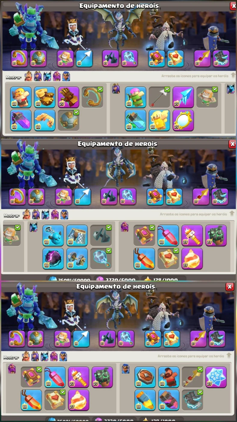 70 skins de heróis, sendo 18 delas lendárias ⚡