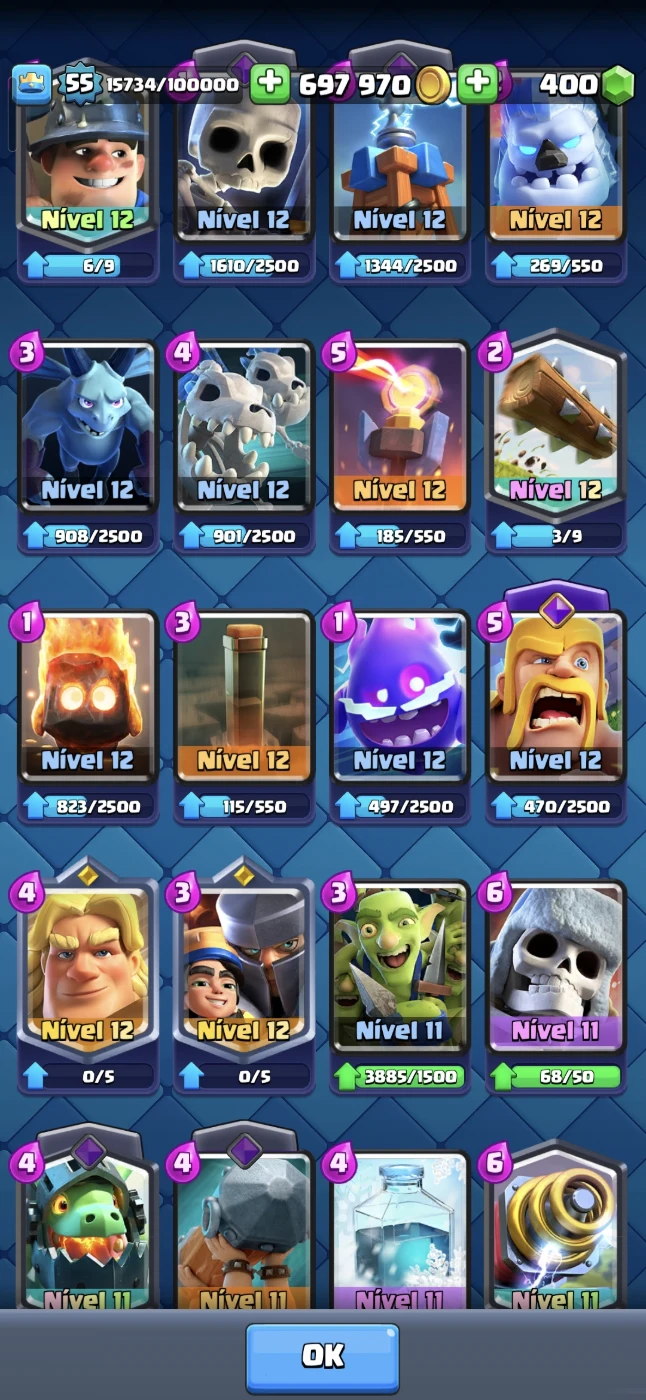 🔥 Conta Clash Royal nível 55, Arena 25, com 10.260 troféus.