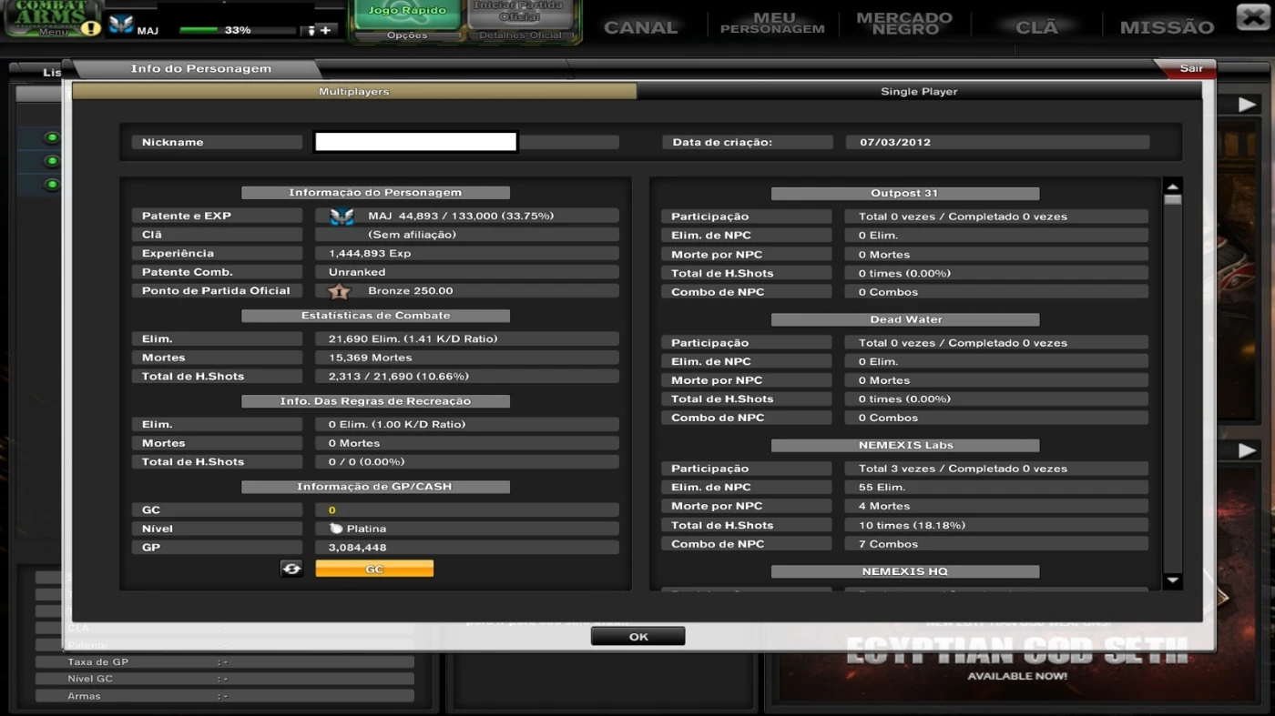 Conta Combat Arms VFUN - Maj 3 - Nível Platina