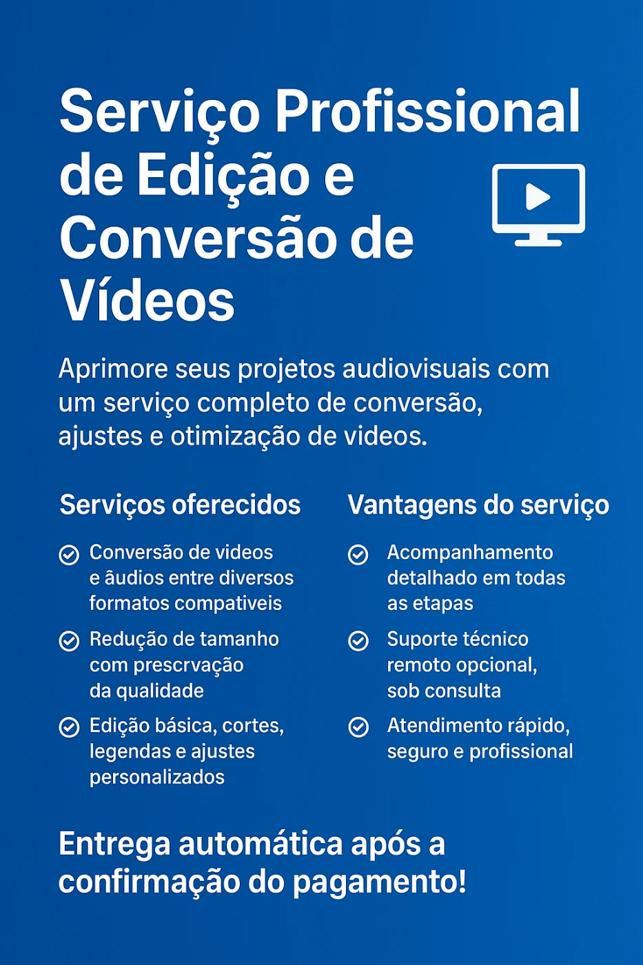 Serviço Profissional de Edição e Conversão de Vídeos 💻✨ - Digital Services