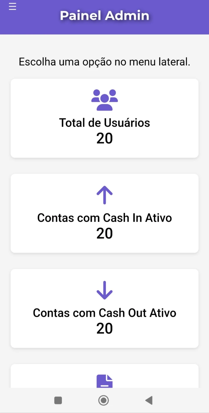 - Admin básico, porém completo, podendo aprovar ou recusar documentos, configurar nome, imagens e taxas da sua gateway, editar contas e transações, e muito mais.