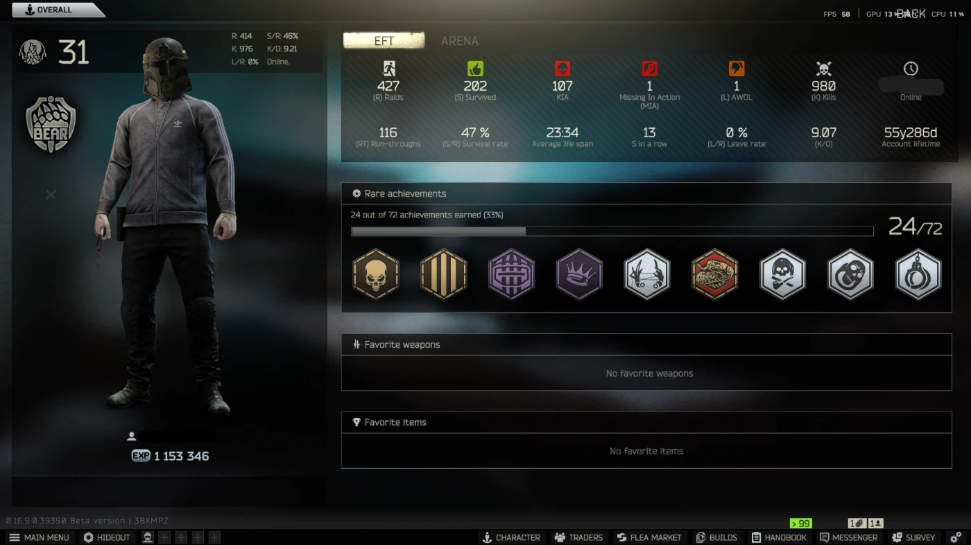 Conta Tarkov Track Suit + Snowball + Arena +Stash+Roupa Bear