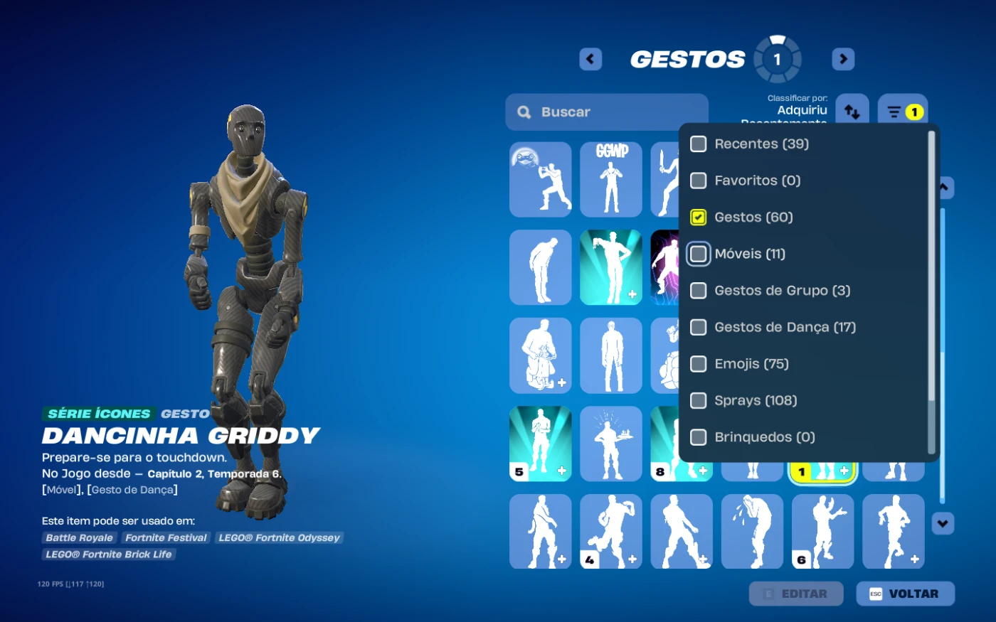 Além disso, vem com 59 gestos, desde danças clássicas até animações mais recentes, oferecendo uma grande variedade para personalizar cada partida com estilo.