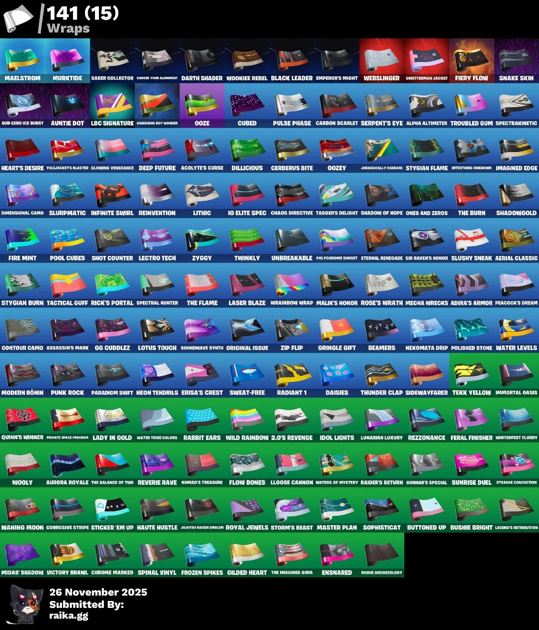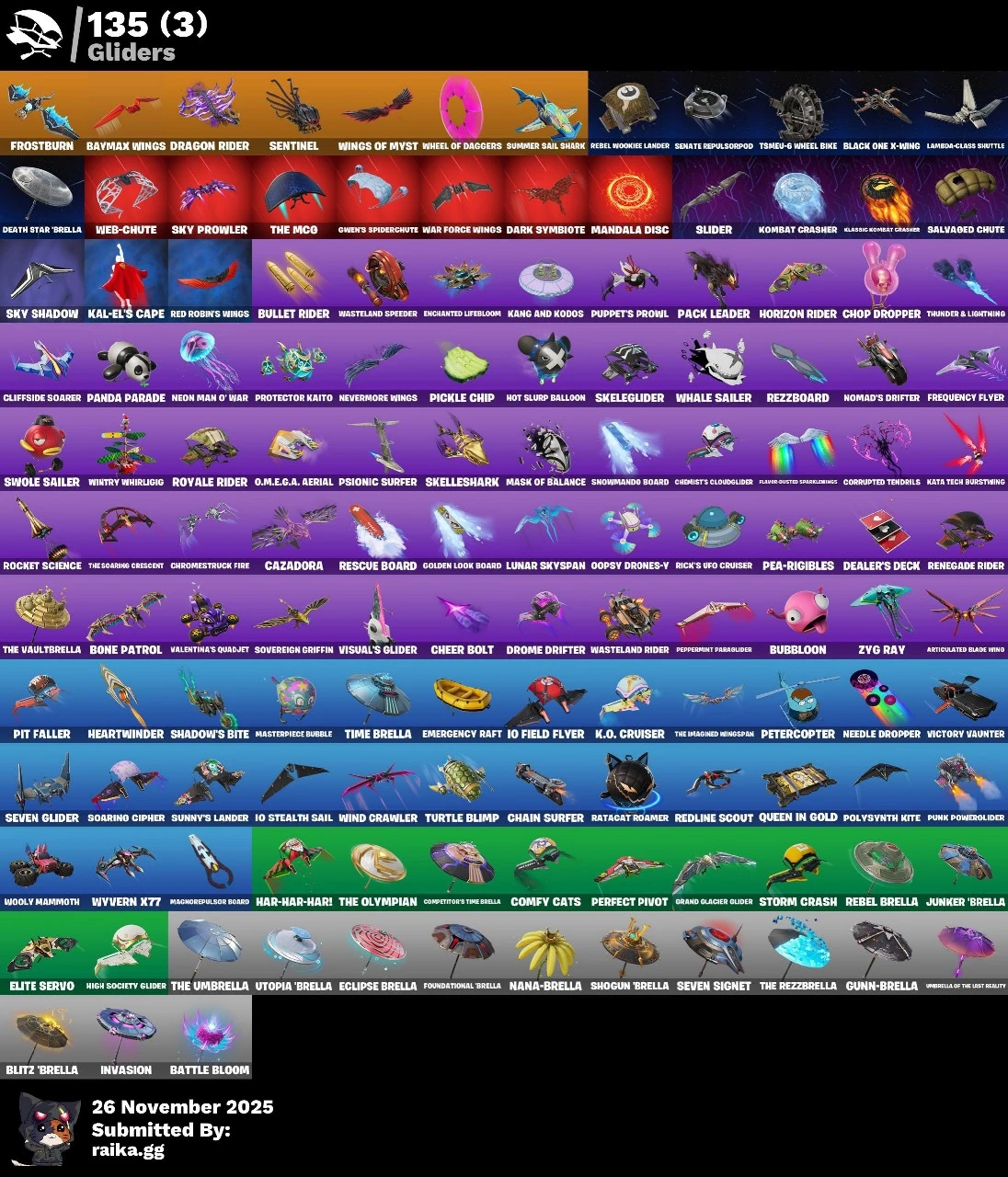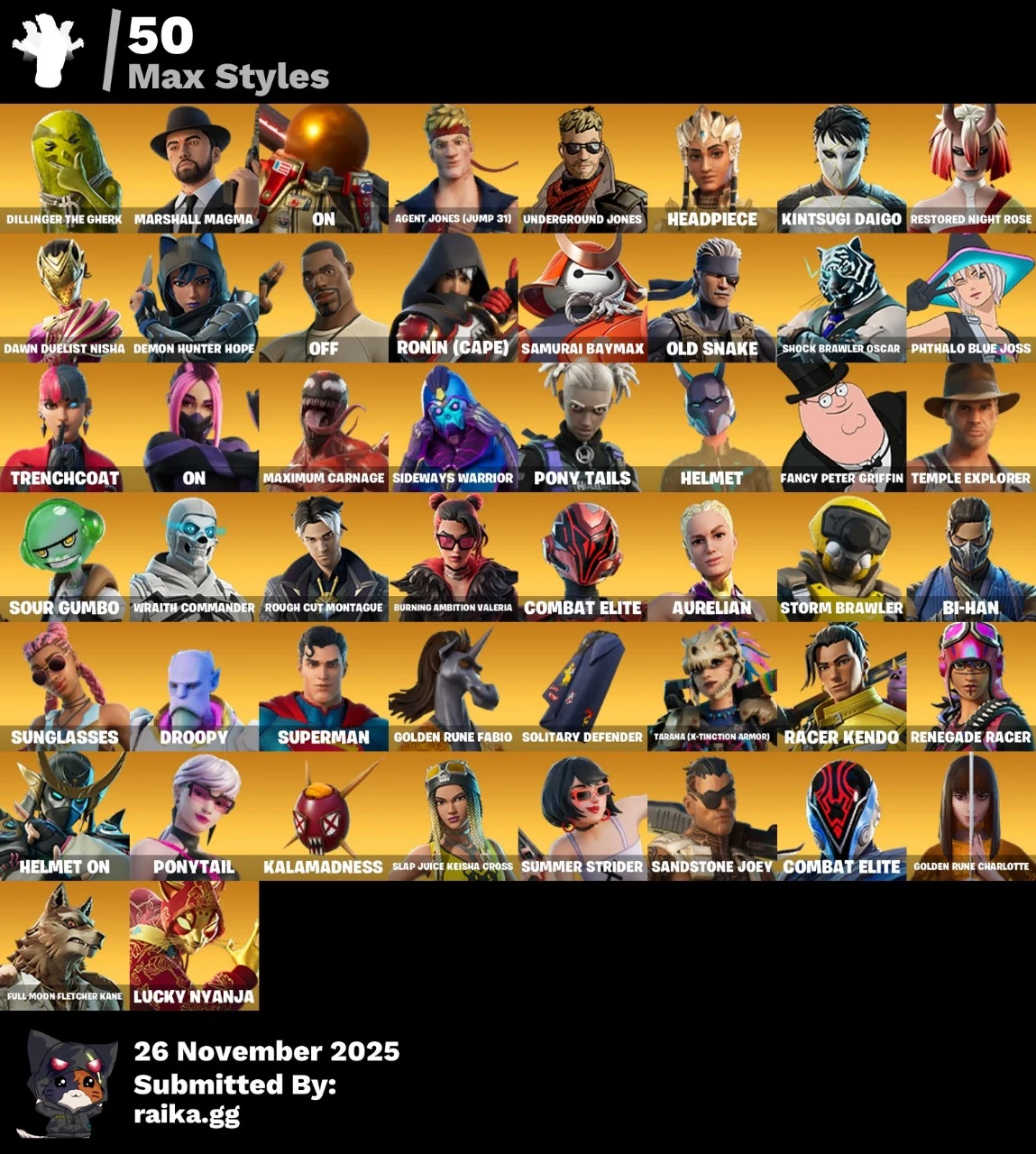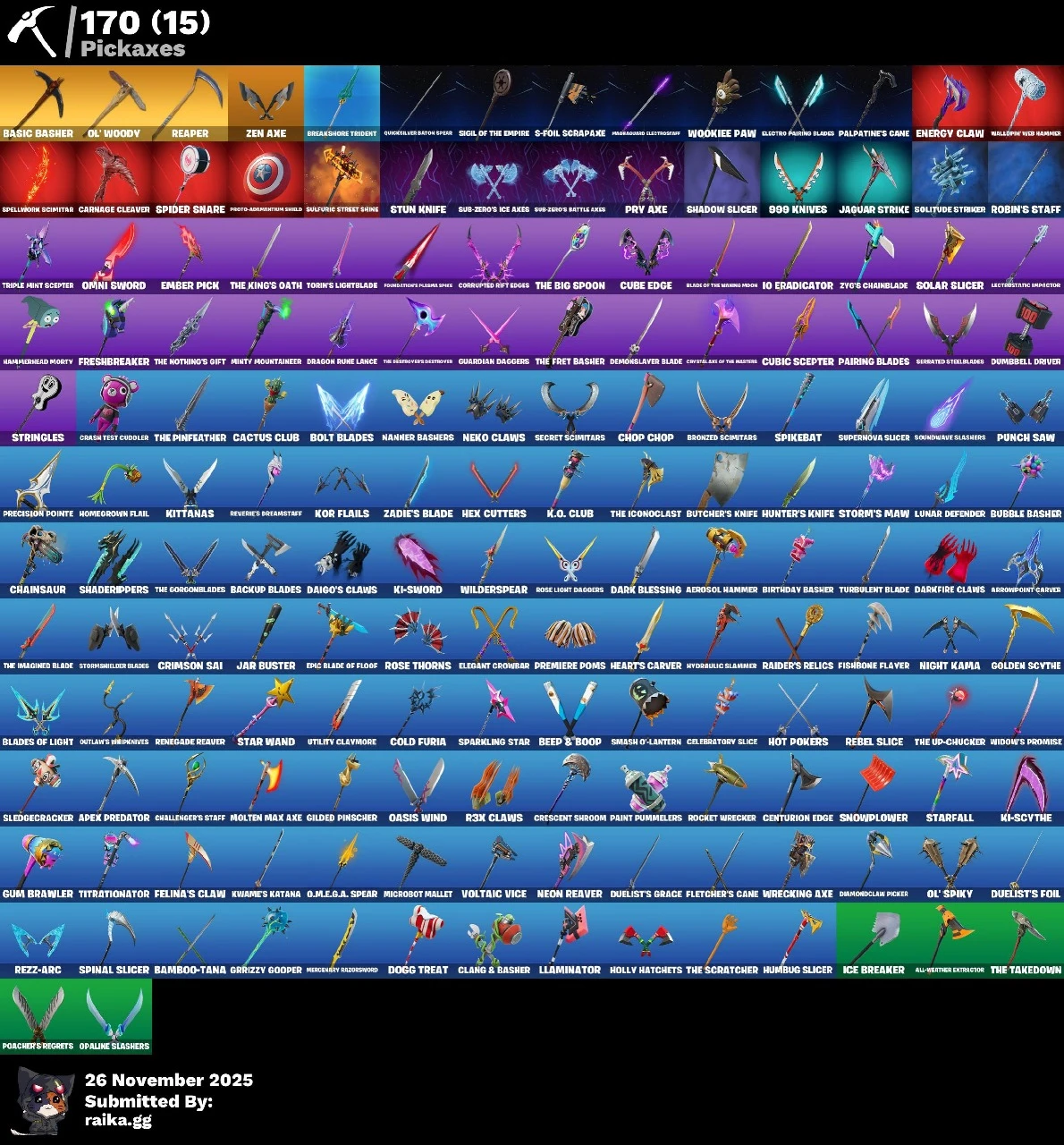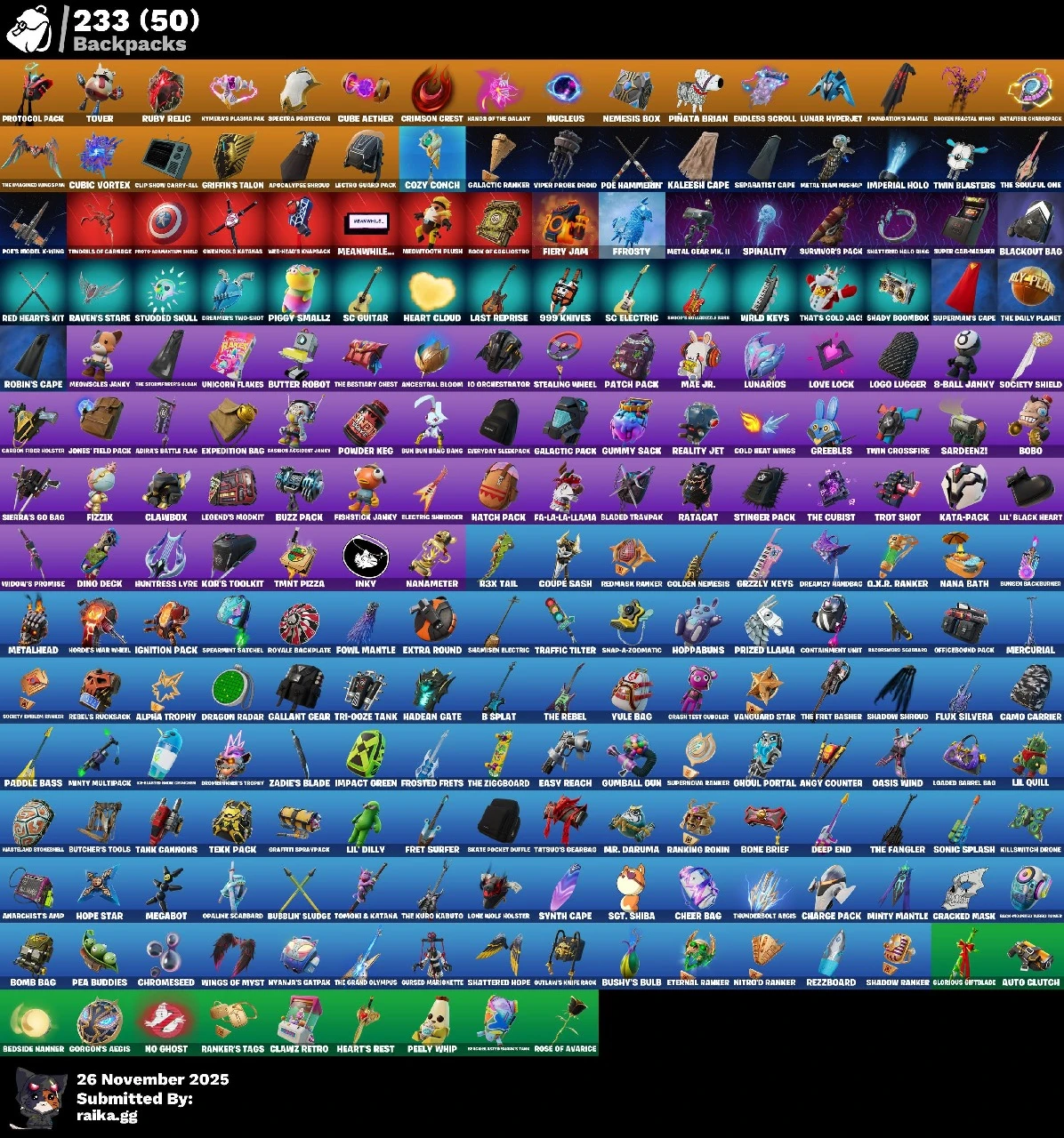 Bastante skin rara e bastante picaretas e mochilas , tem até 4 tênis,  por um preço bom (120R$)