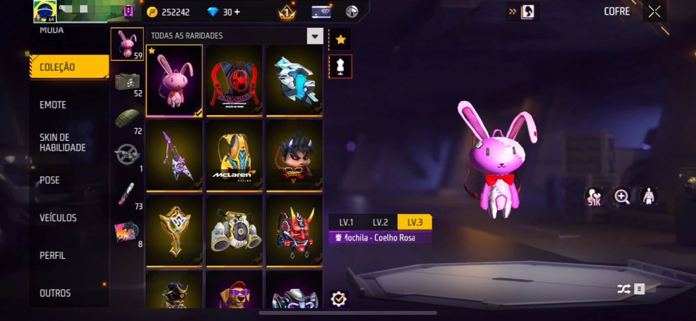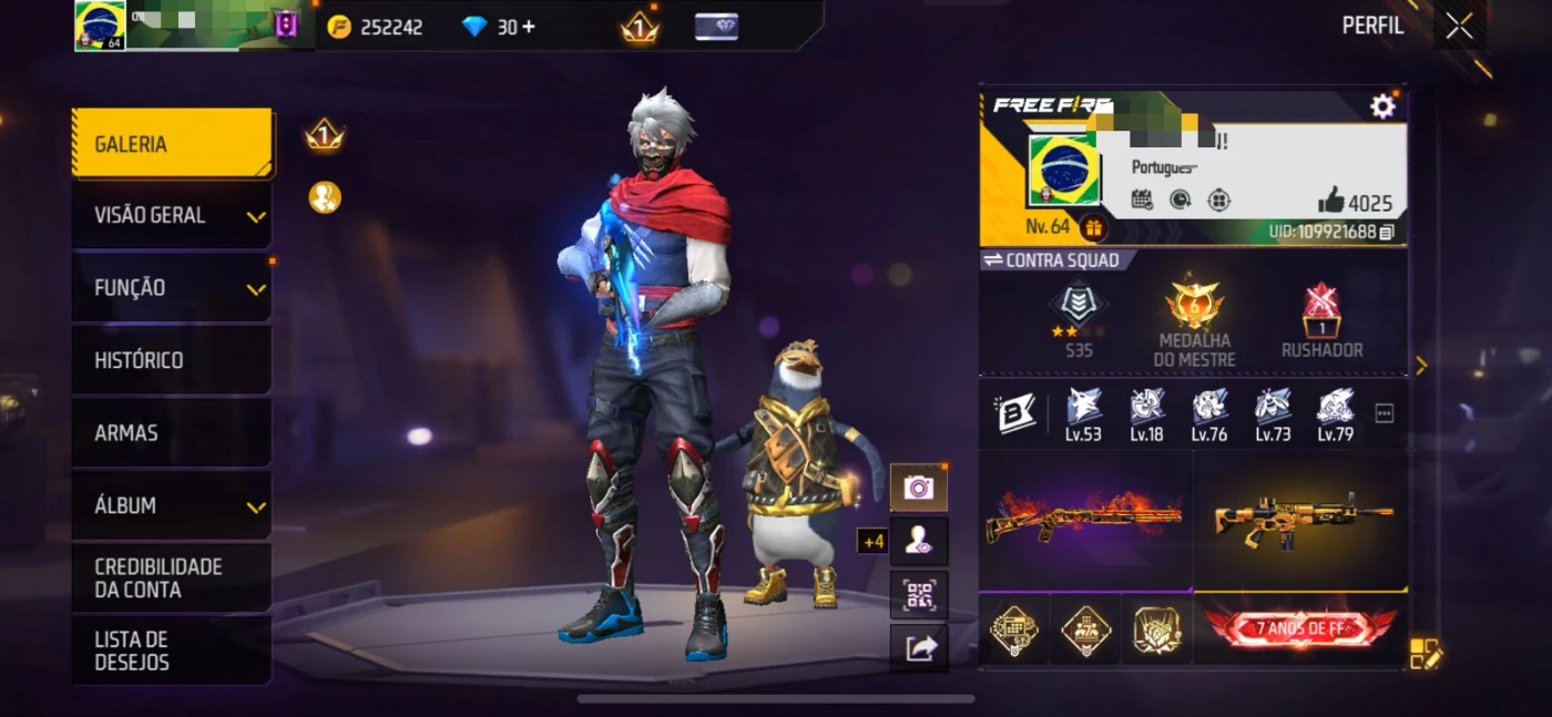Conta Free Fire gemada todos os passes