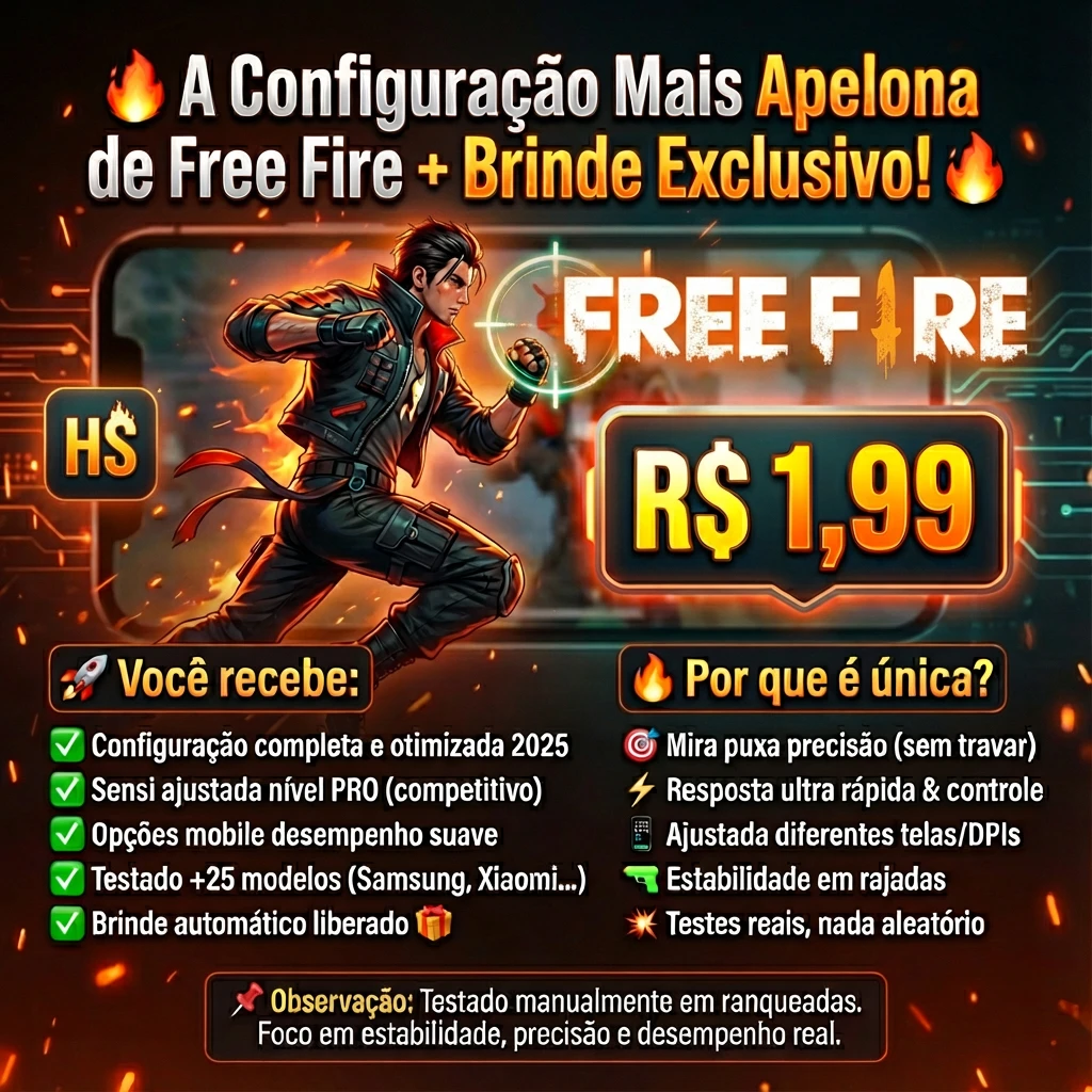Se você quer jogar como os mais insanos do cenário, essa é a configuração que transforma seu gameplay de imediato. Nada de sensi genérica — aqui você recebe configurações refinadas, testadas e ajustadas para entregar resposta rápida, precisão absurda e mira colada no HS.