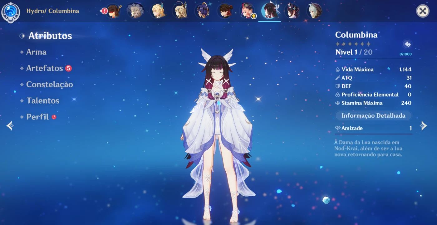 Conta Genshin Impact AR56, Com Columbina,Lauma,Ineffa e mais