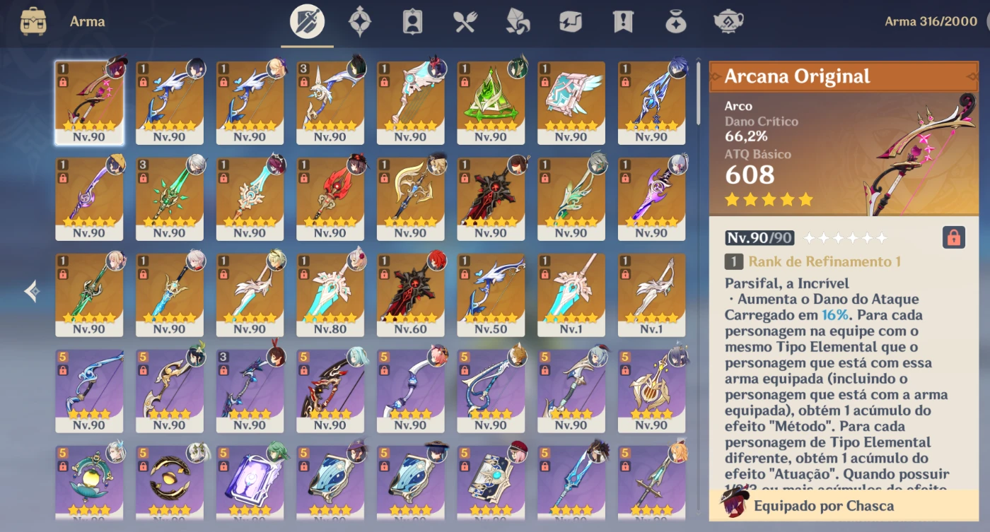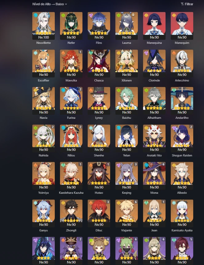 Conta Endgame Ar60 Com Diversos Personagens C2 - Genshin Impact