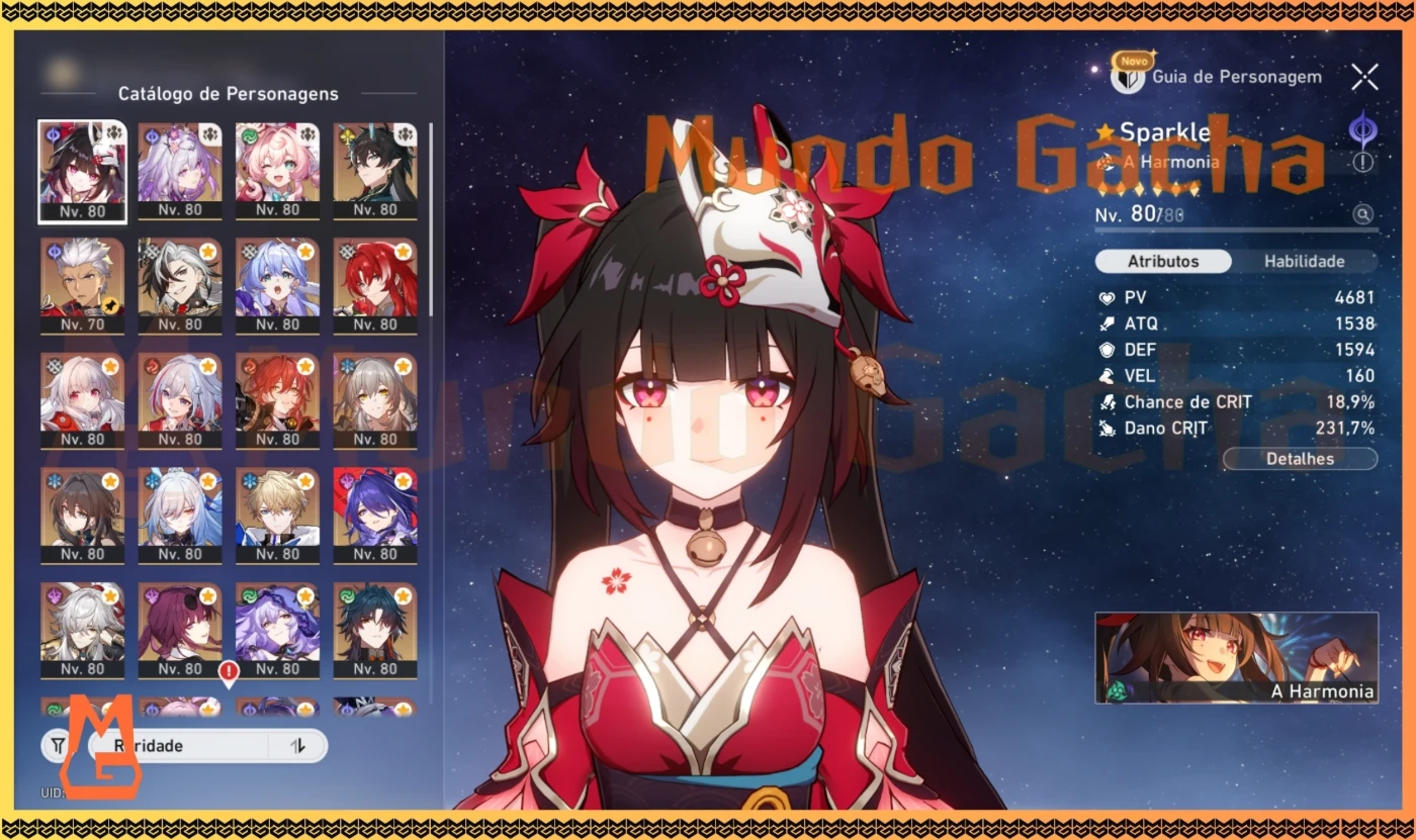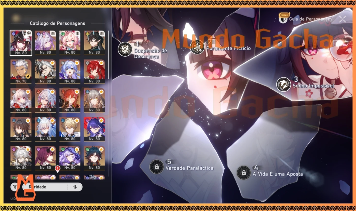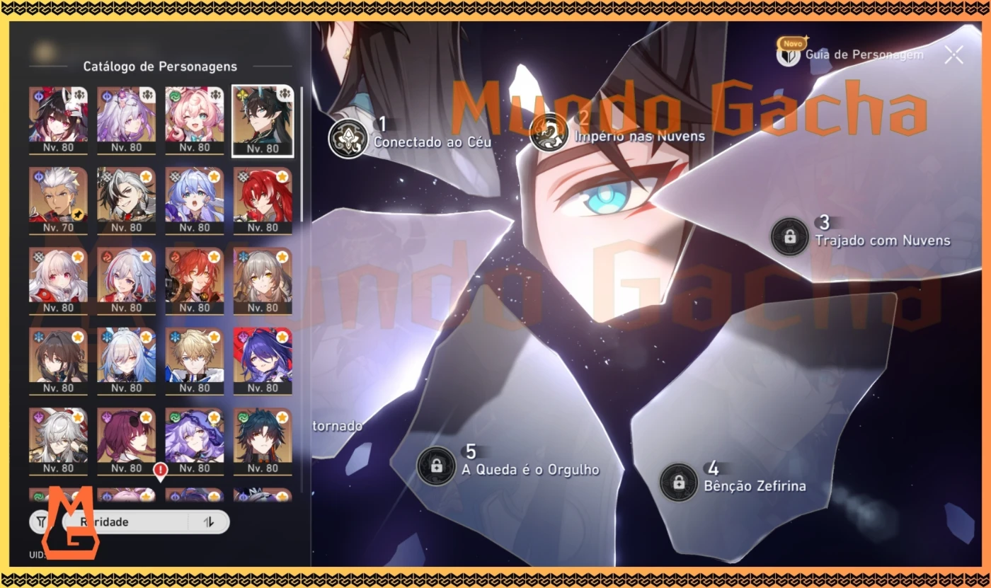 ►Personagem 4✯: GallagherE6 + HanyaE6 + GuinaifenE6 + YukongE6 + TingyunE6 + LynxE6 + PelaE6 + 7 de MarçoE6 + MishaE6 + XueyiE6 + SushangE6 + QingqueE6 + LukaE6 + HookE6 + SampoE6 + NatashaE6 + ServalE6 + AstaE6 + ArlanE6 + Dan HengE6 + HertaE5 + MozeE1