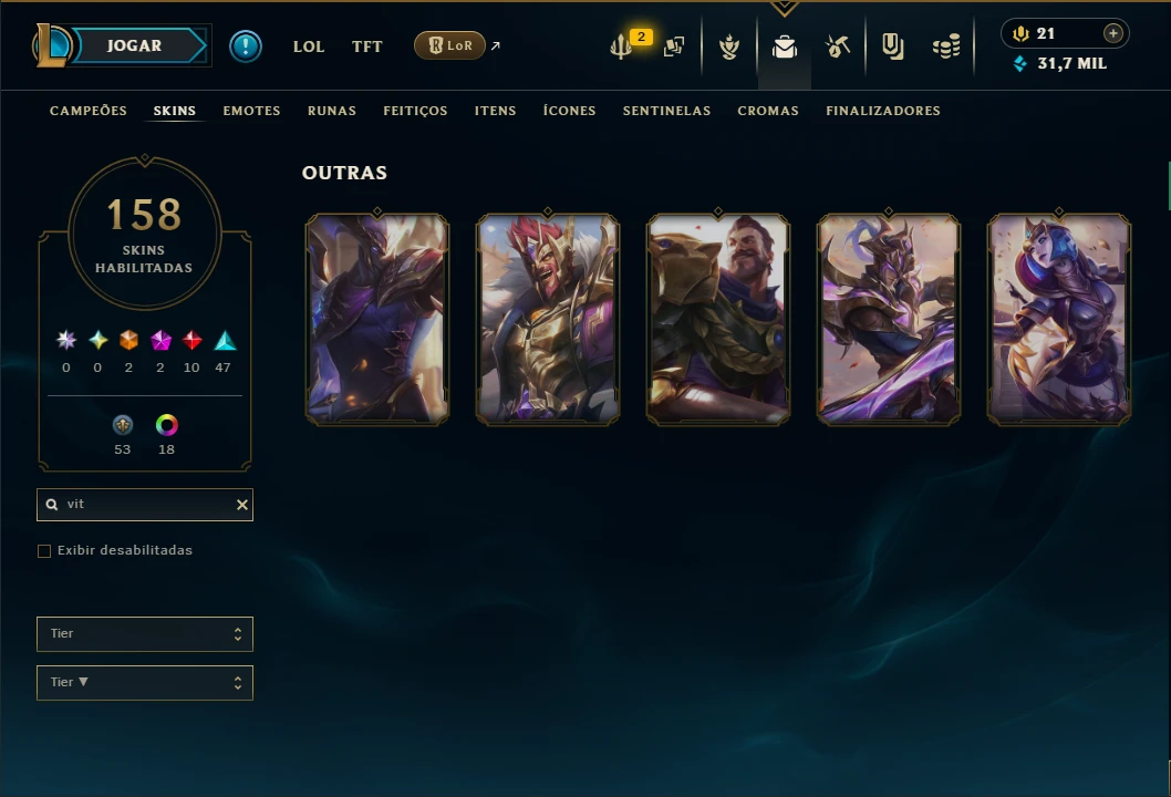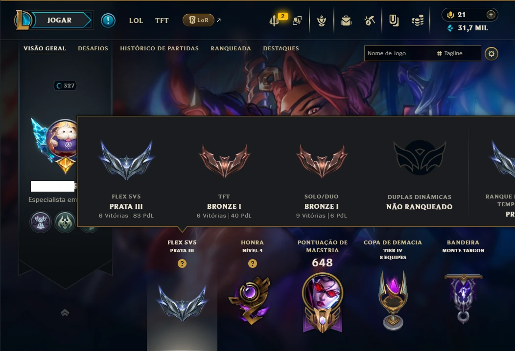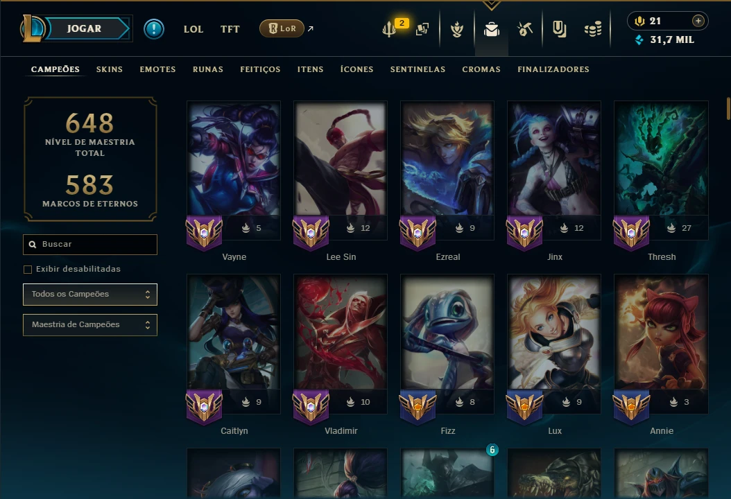 Mais de 5.000 vendas no site – Experiência e Confiança!Bronze 1 com TODOS os Champs e 158 Skins ( ADC / MID / JG )