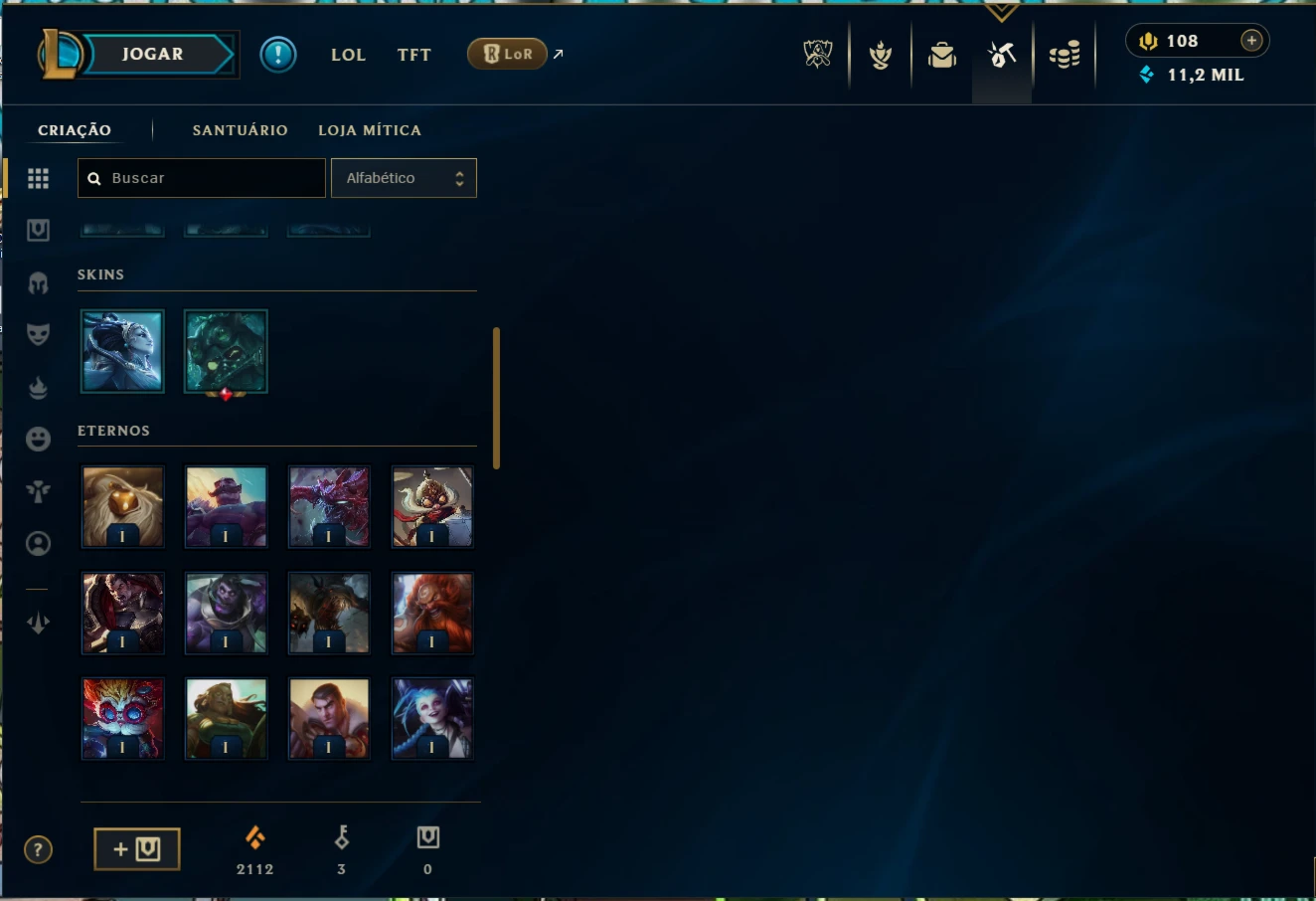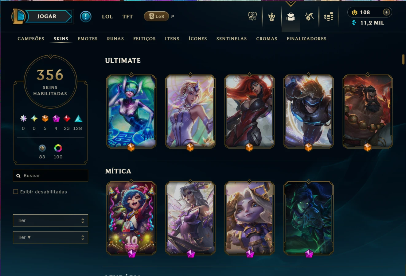 • Lvl: 390, Todos os campeões exceto Yunara, 356 skins