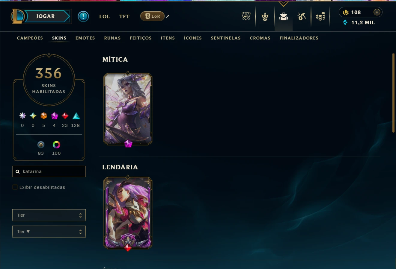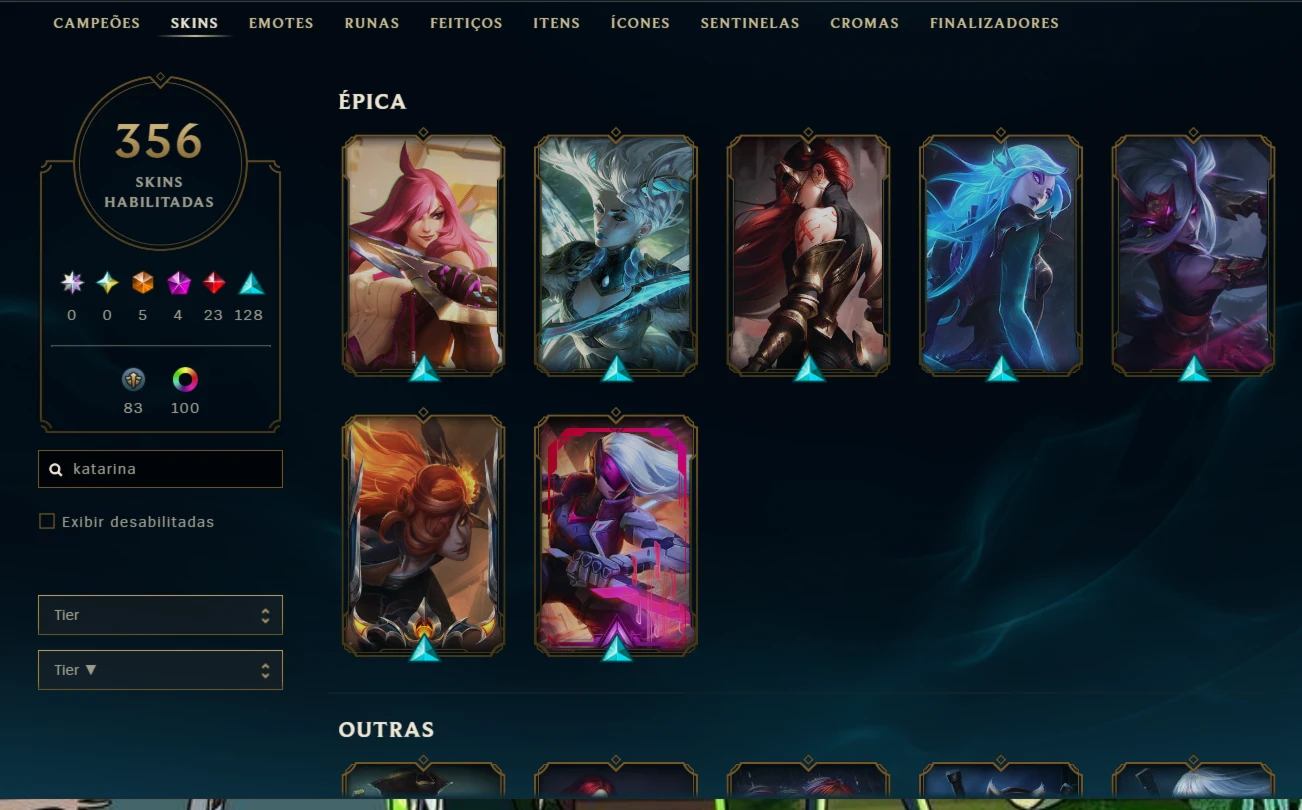 Conta 2013 - Main katarina com todos campeões e 356 skins - League of Legends LOL