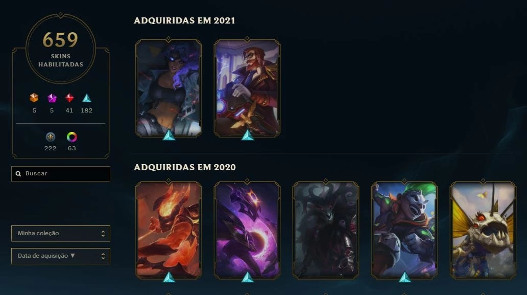 conta com 659 skins e faltando 8 campeões