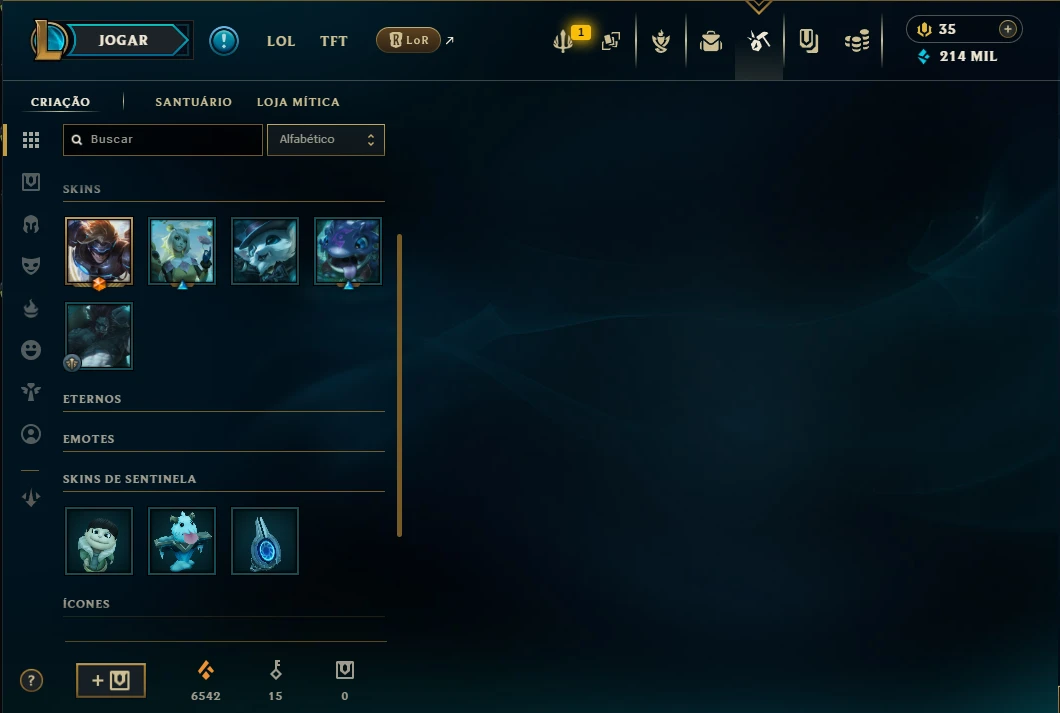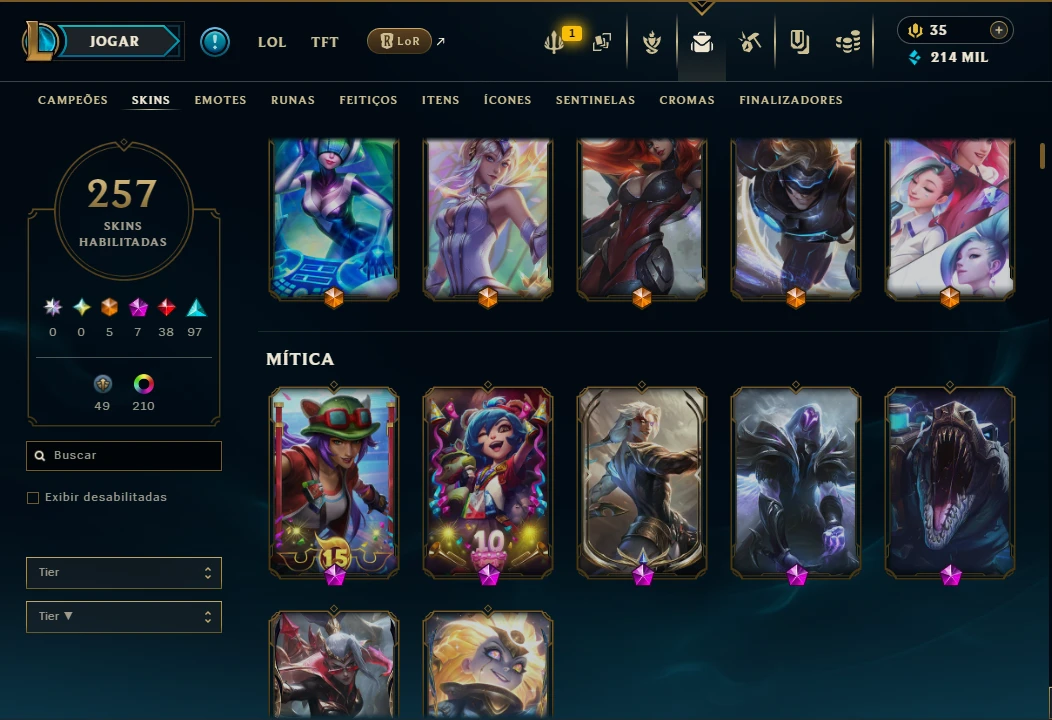 Skins: 257 Chromas: 217 Campeões: TODOS