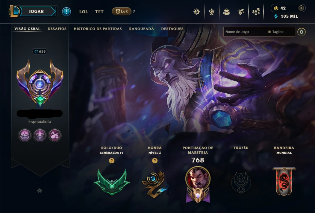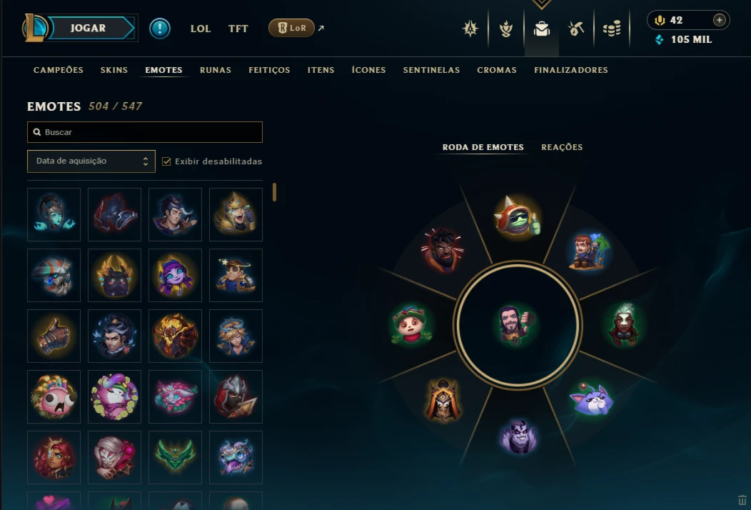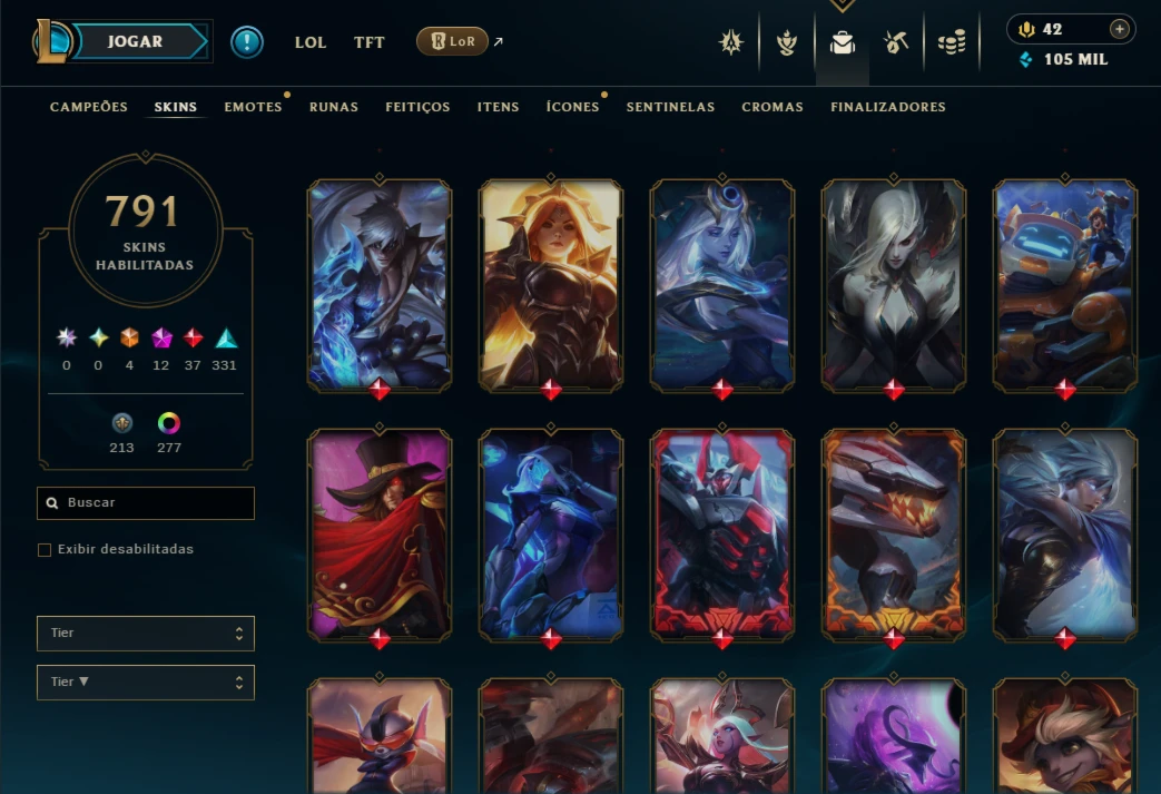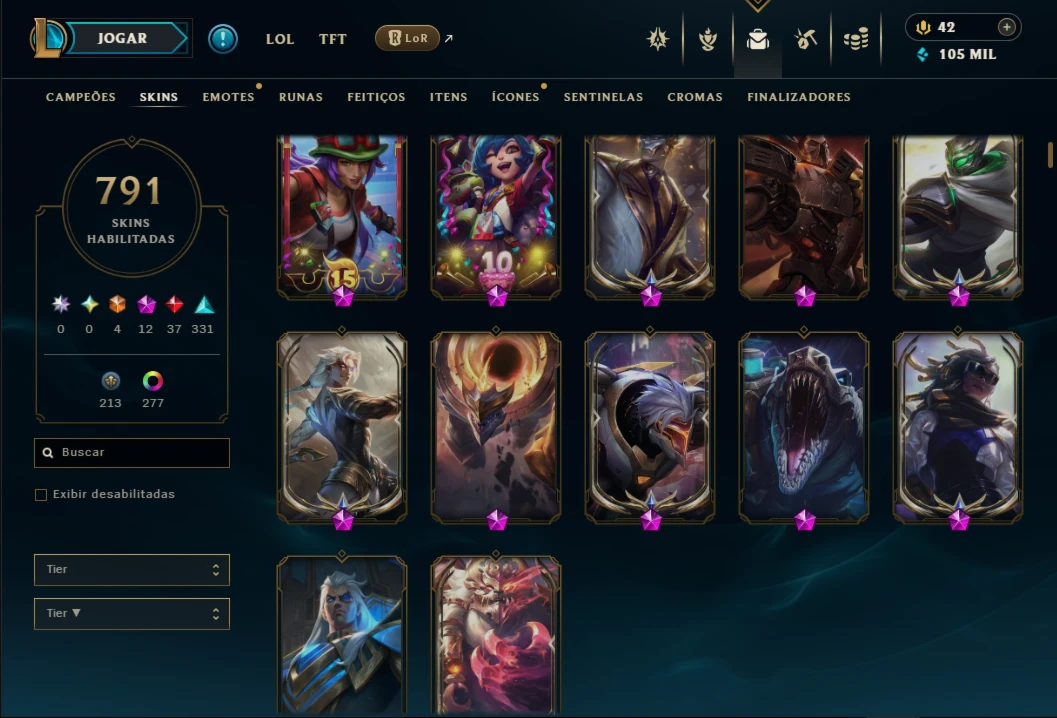 Conta lol com 791 skins Valor 6,324 Reais.