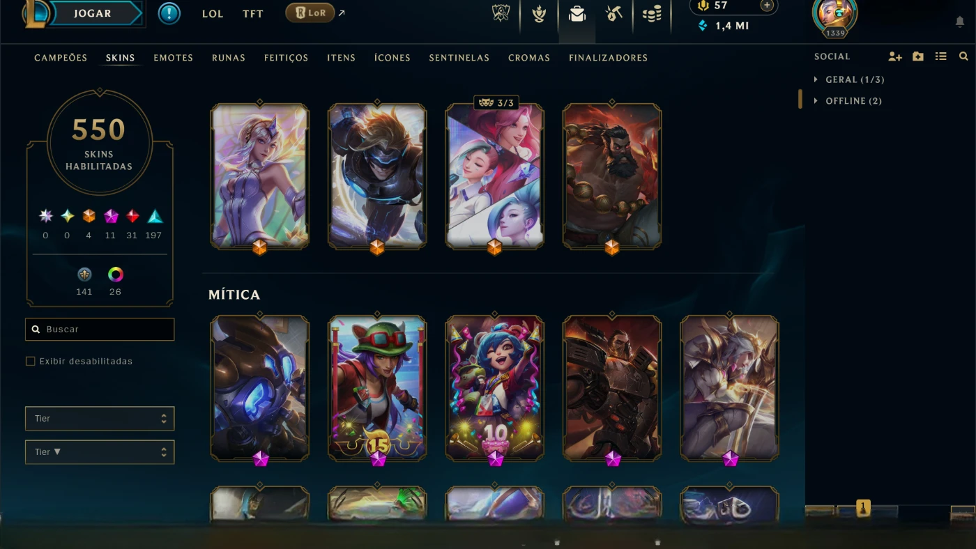 Conta lol N.1339 Todos os Campeoes e 1 Milhao e 400 Mil EA - League of Legends