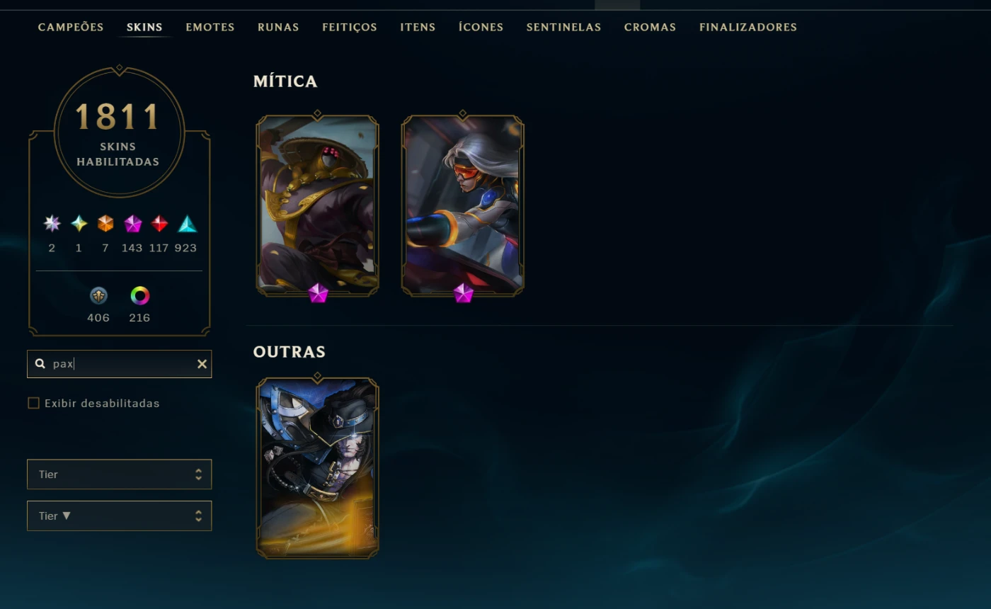 Conta do lol mais de 10 anos, com todos os champ e 1800 skins+, conteúdo exclusivo e raro.