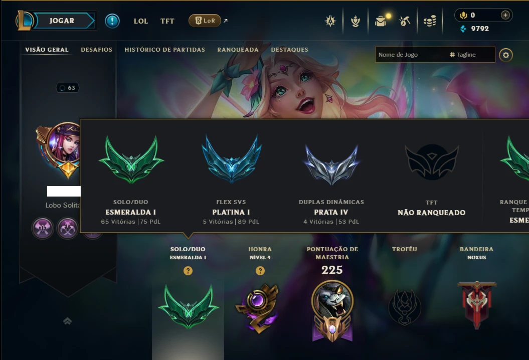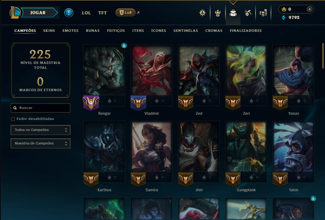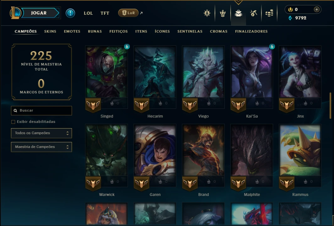 Esmeralda 1 com 75 Champs e 11 Skins - League of Legends LOL