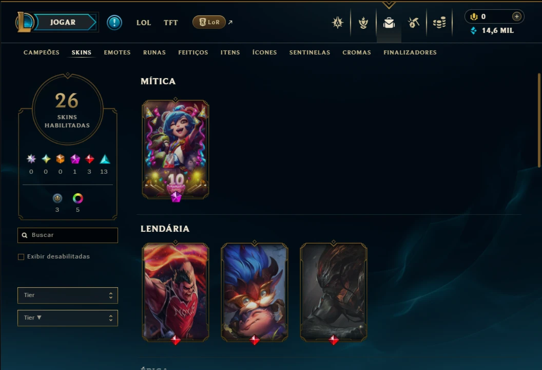 Esmeralda 2 com 55 Champs e 26 Skins - League of Legends LOL