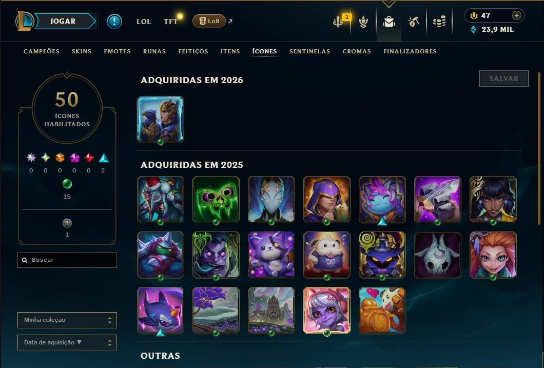 ( MONO ADC ) - Conta Esmeralda 3 com 55 Champs e 4 Skins, 23k de EA, 50 Ícones, 12 Emotes, 9 Fragmentos de skins, 1 de Campeão, 1 Reembolso e Honra 4.