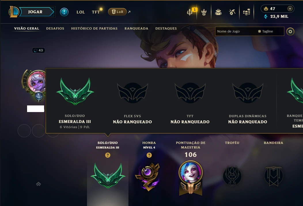 Esmeralda 3 com 55 Champs e 4 Skins ( MONO ADC ) - League of Legends LOL