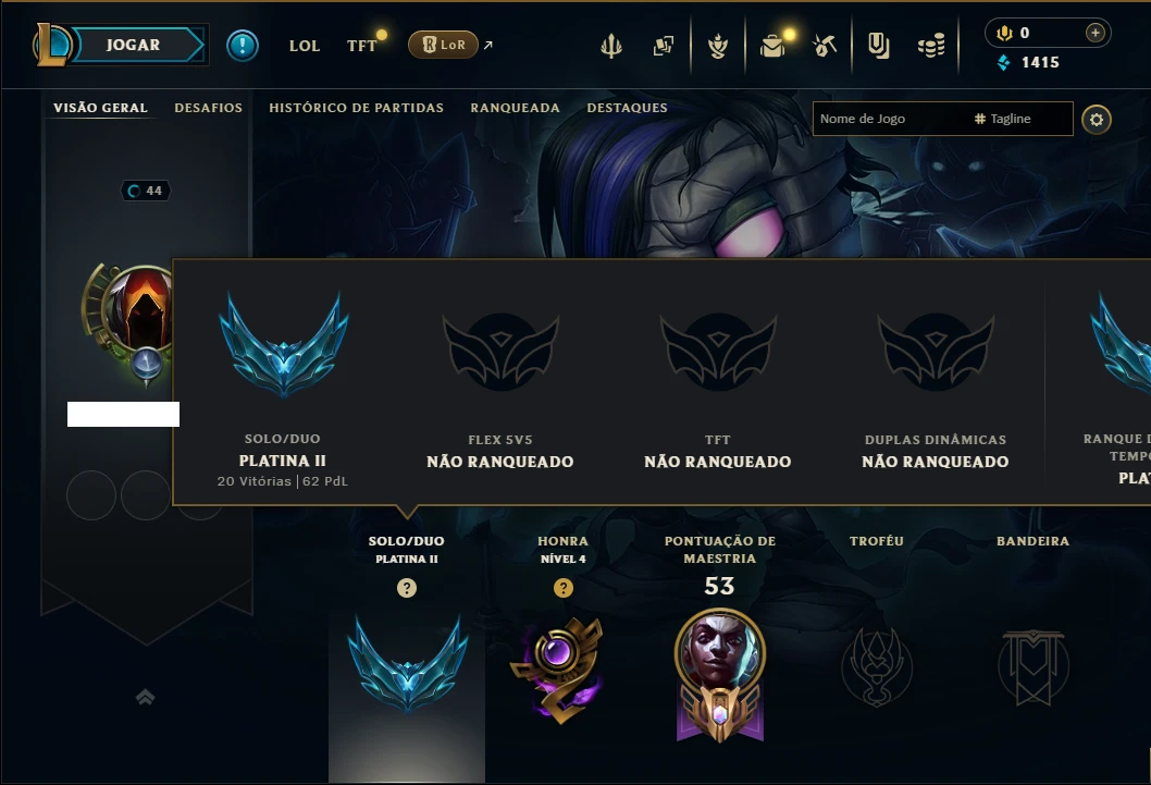 Platina 2 com 45 Champs e 11 Skins - League of Legends LOL